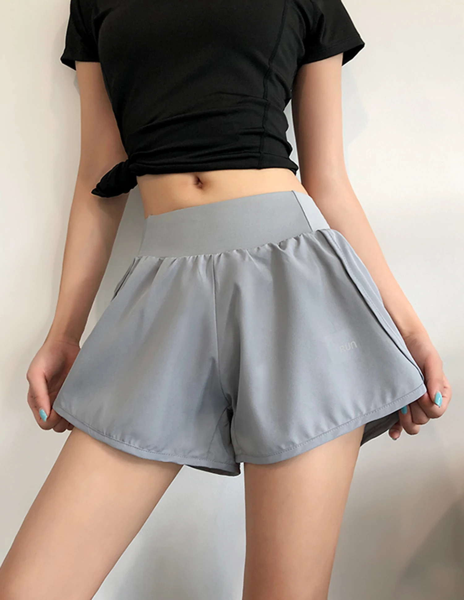 Cute, black shorts that say RUN. Outer material is and feels cheap but the inner pants are nice.