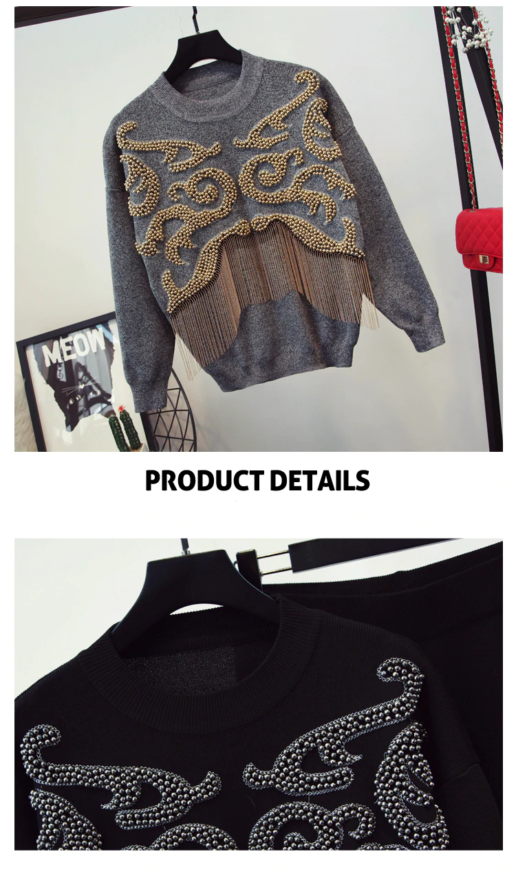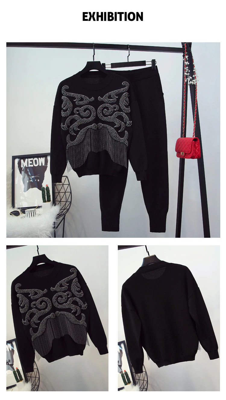 2 Piece Luxurious Beading Tassel Women’s Tracksuit is a fashion statement in itself. I mean, you don’t need anything else if you’re wearing this tracksuit! This is the one, the complete set that sets you apart!