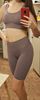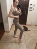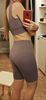 Очень классный костюм). Мягкий, тянется. Ношу размер S, параметры 86-68-92, рост 168. Но думаю, что надо было заказывать М. Эска вроде тоже хорошо сидит, но прям все сильно утянуло и давит (больше бюст давит), и надеюсь лосины не порвутся, по длине коротковаты, как скинни. В целом довольна!Если ещё чёрный взять, то визуально будет убирать пару кг. Доставка в Москву примерно месяц.