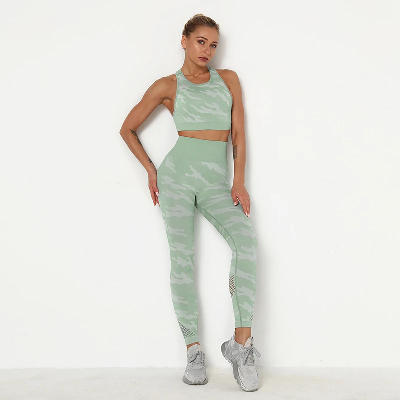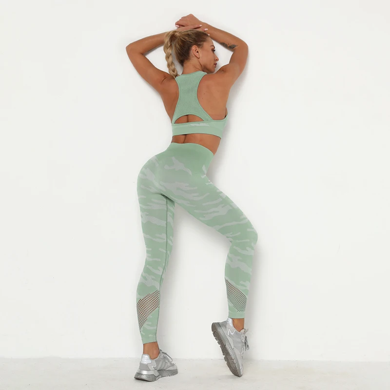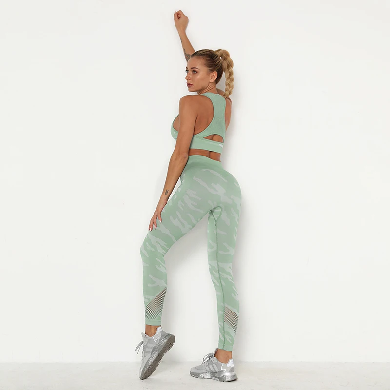 2 Pieces Camouflage Push Up Bra And Leggings Set