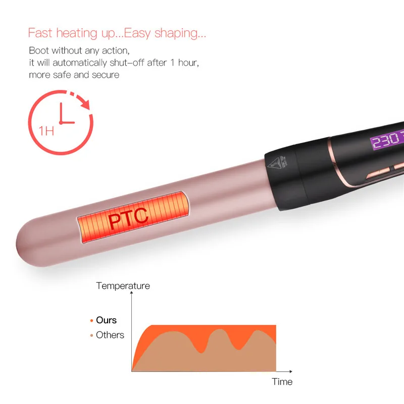 Tourmaline ceramic heating barrels ensure uniform heating, which can reduce hair damage, make your hair healthy, natural and shiny.