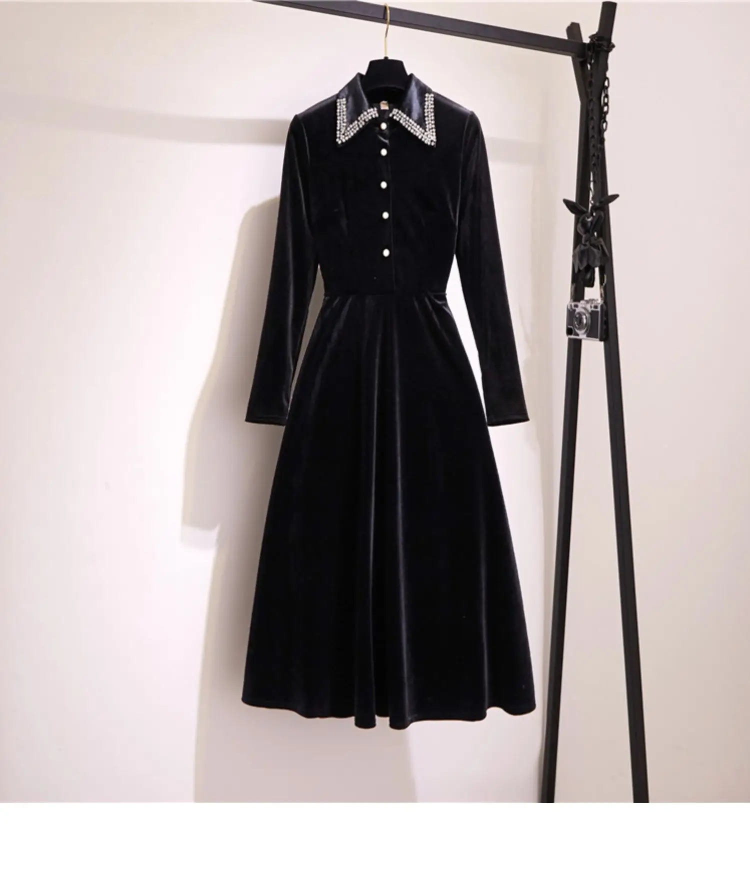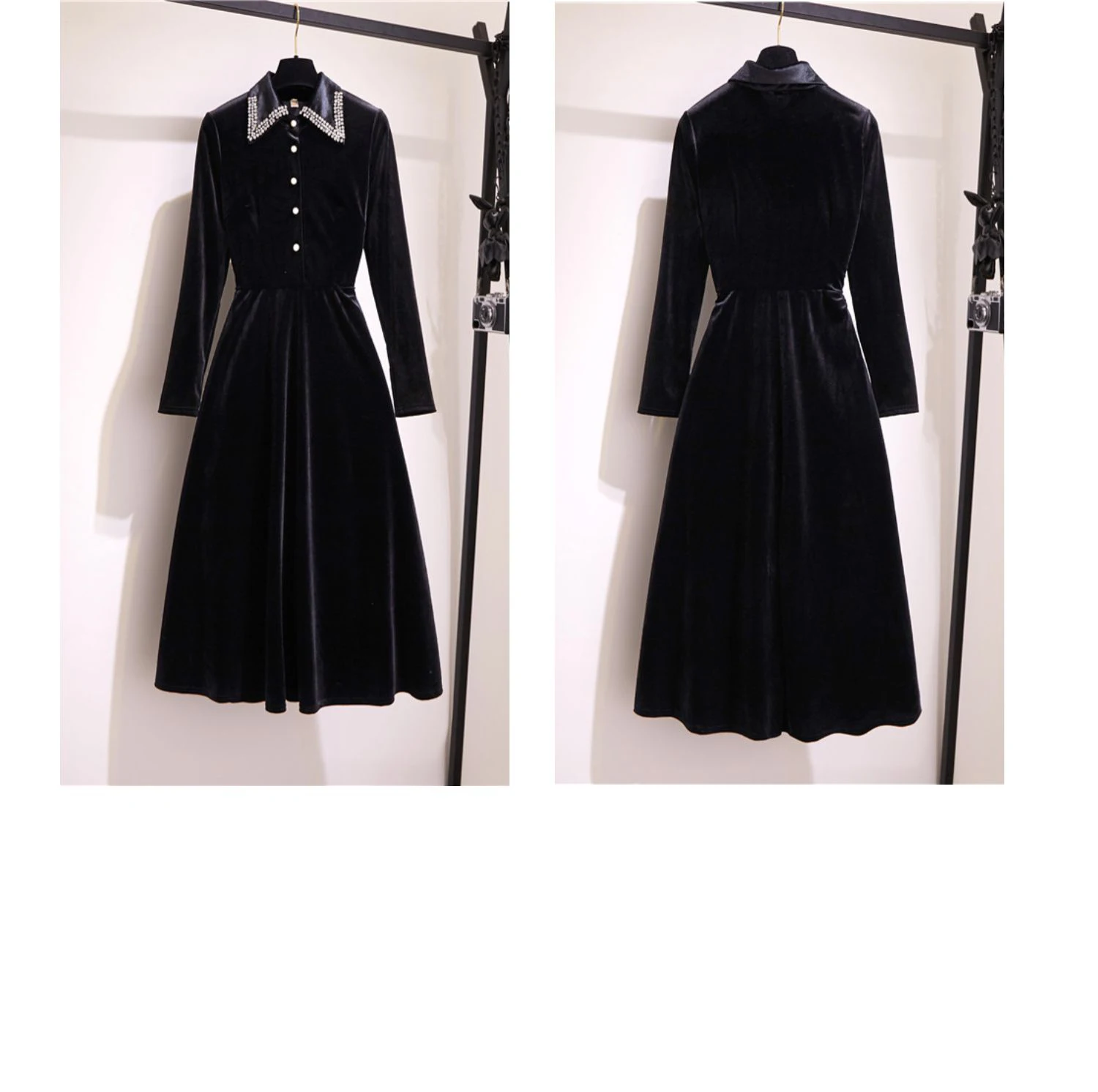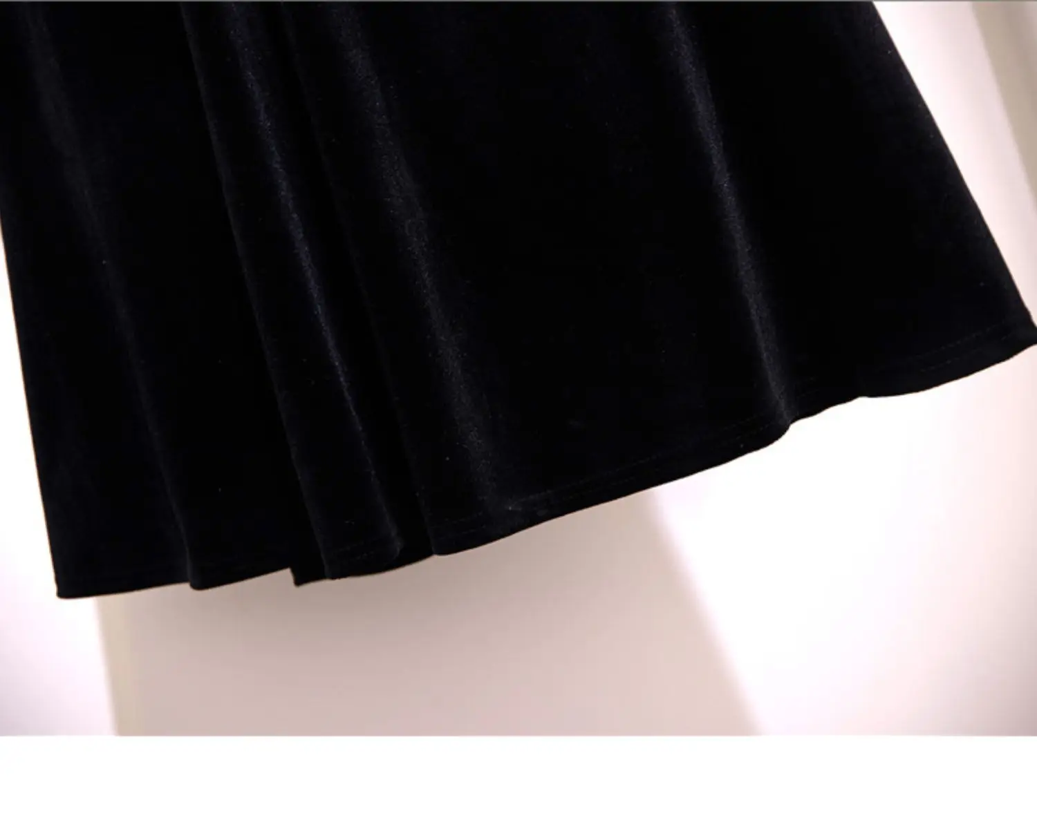 Such an elegant dress for your events, cocktails, or holidays: Black velvet has power and this ladylike long-sleeved dress fits perfectly a lady who wants to stand out in a subtle way.