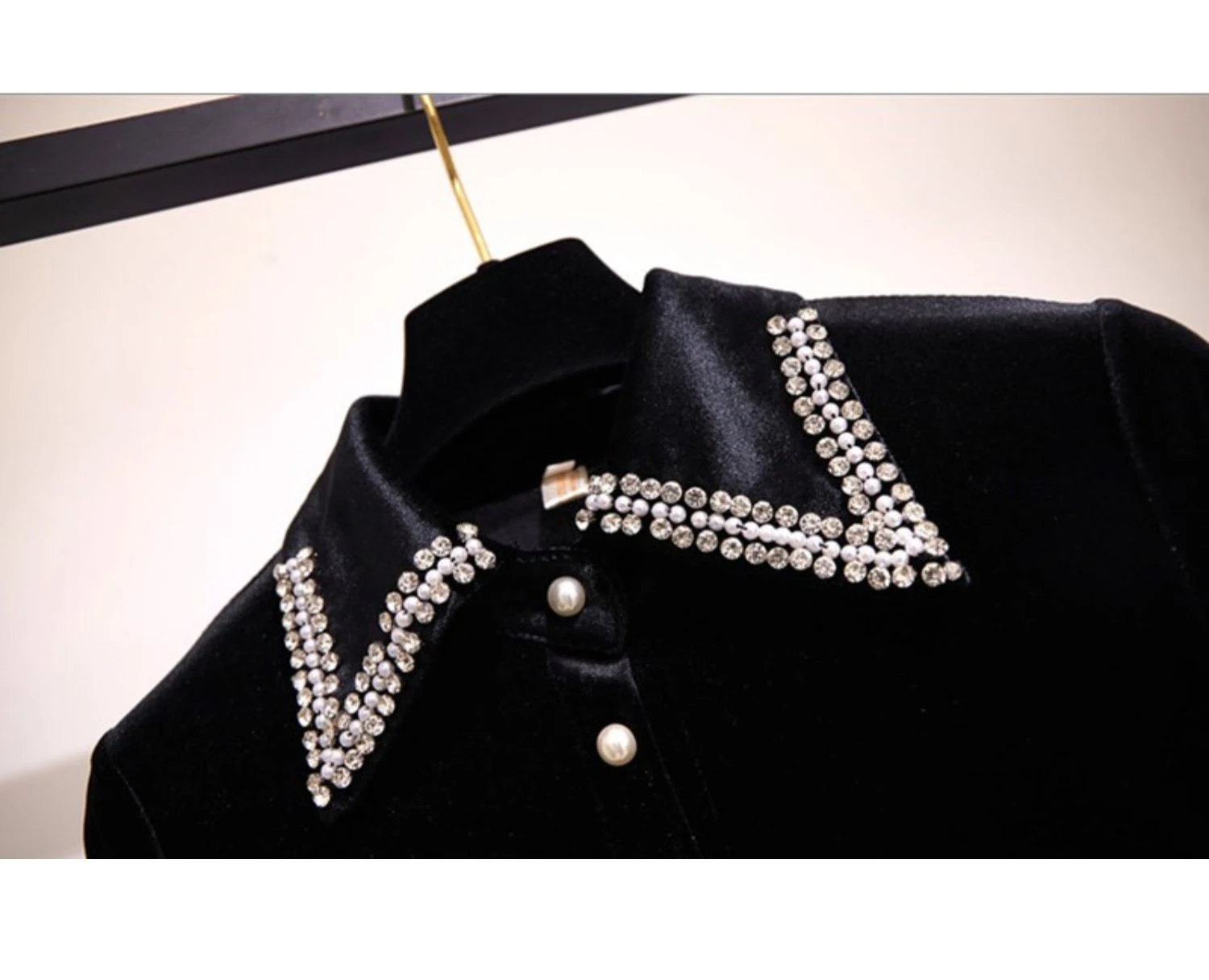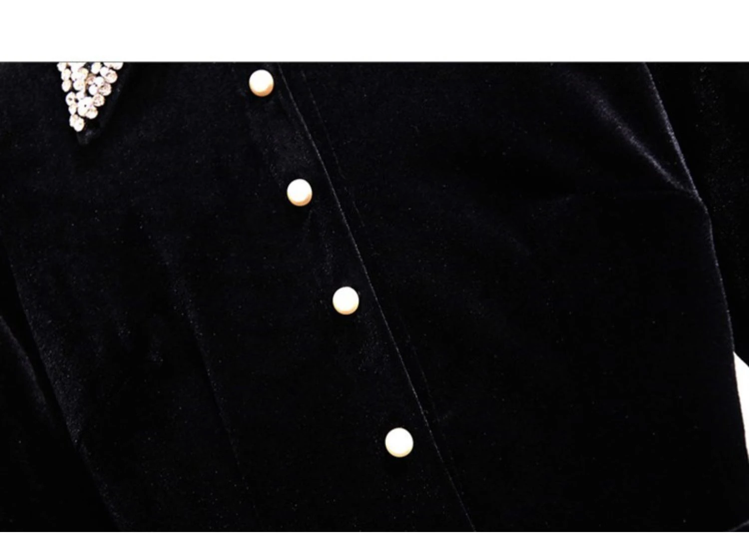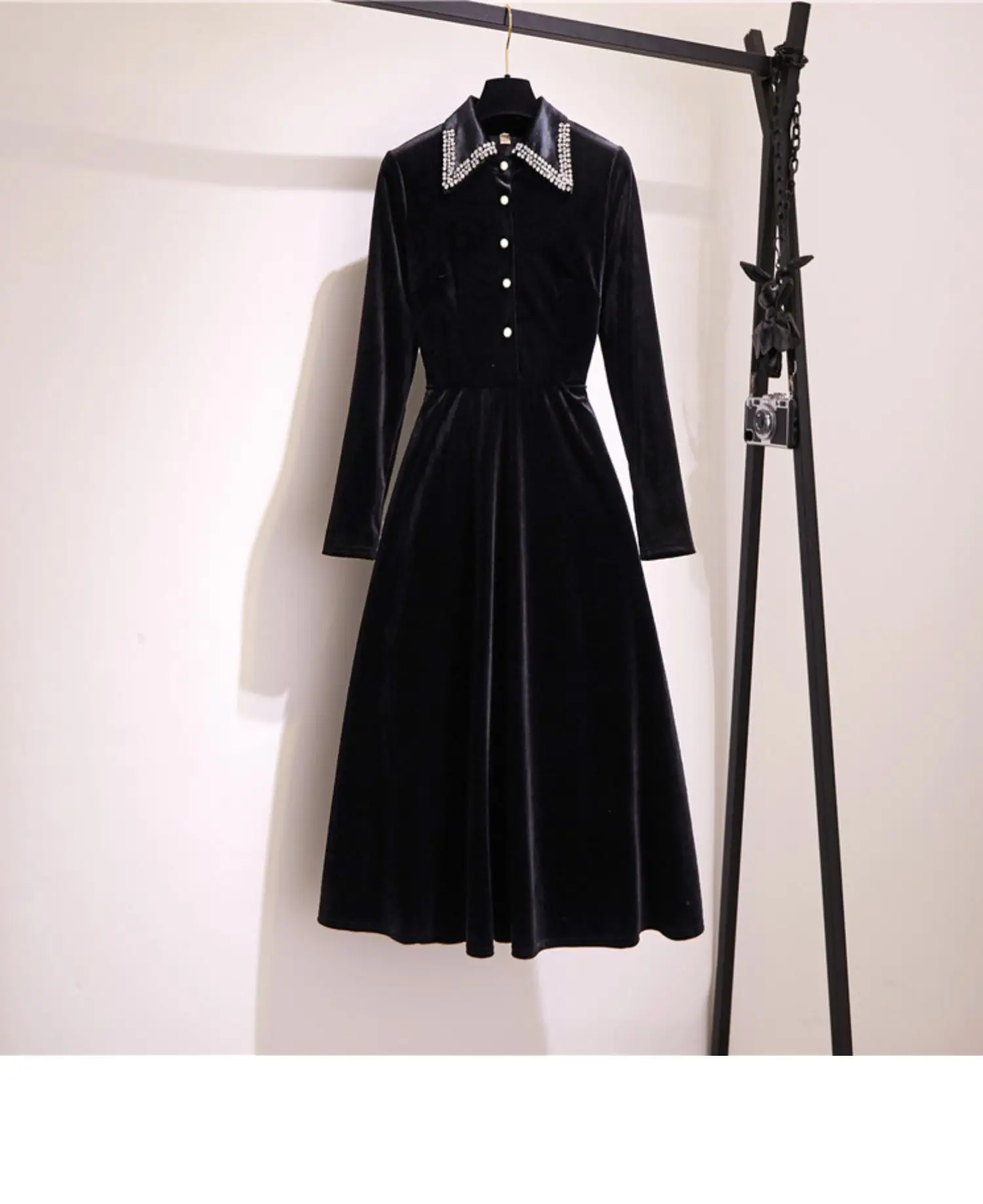 Such an elegant dress for your events, cocktails, or holidays: Black velvet has power and this ladylike long-sleeved dress fits perfectly a lady who wants to stand out in a subtle way.