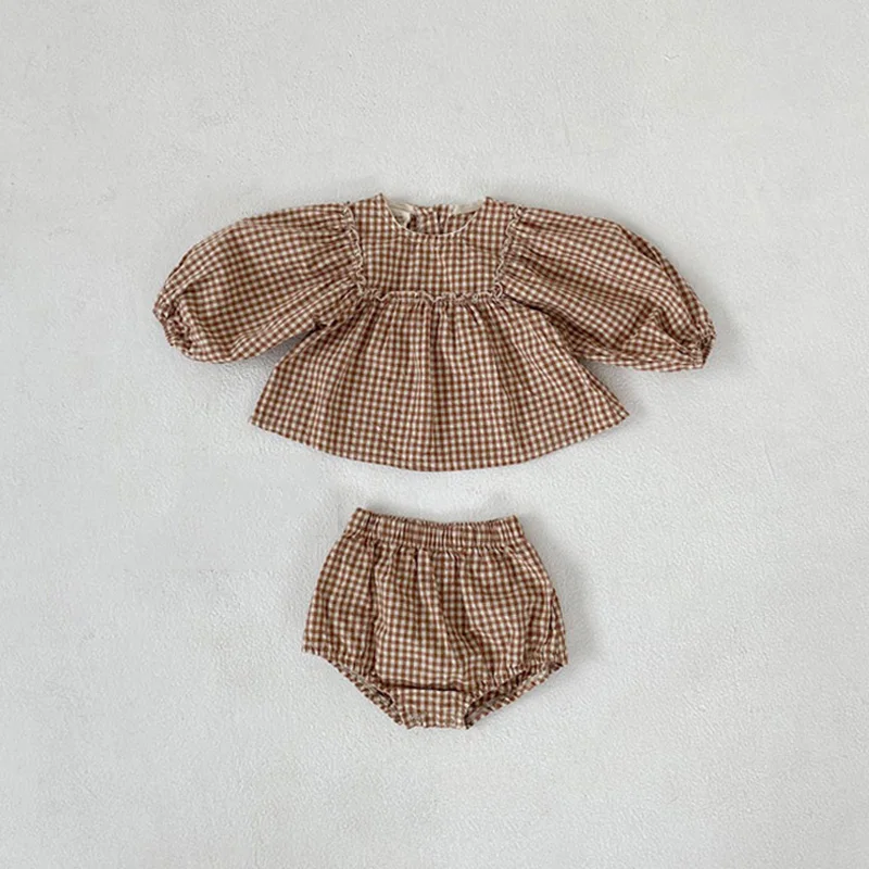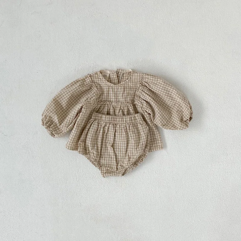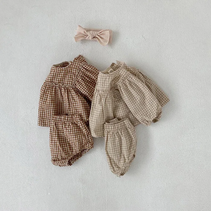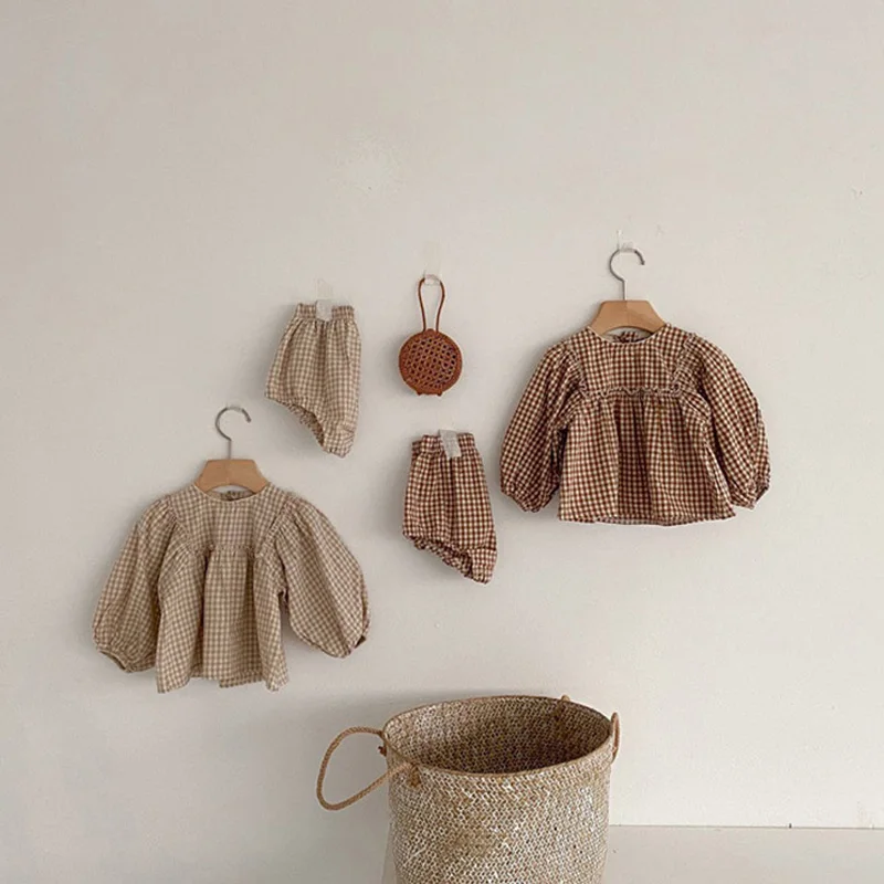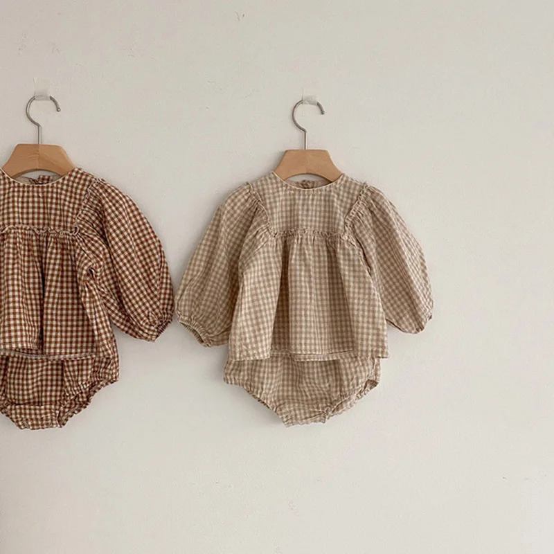 Baby Top Cute Retro Plaid – Long-Sleeved Baby Romper
