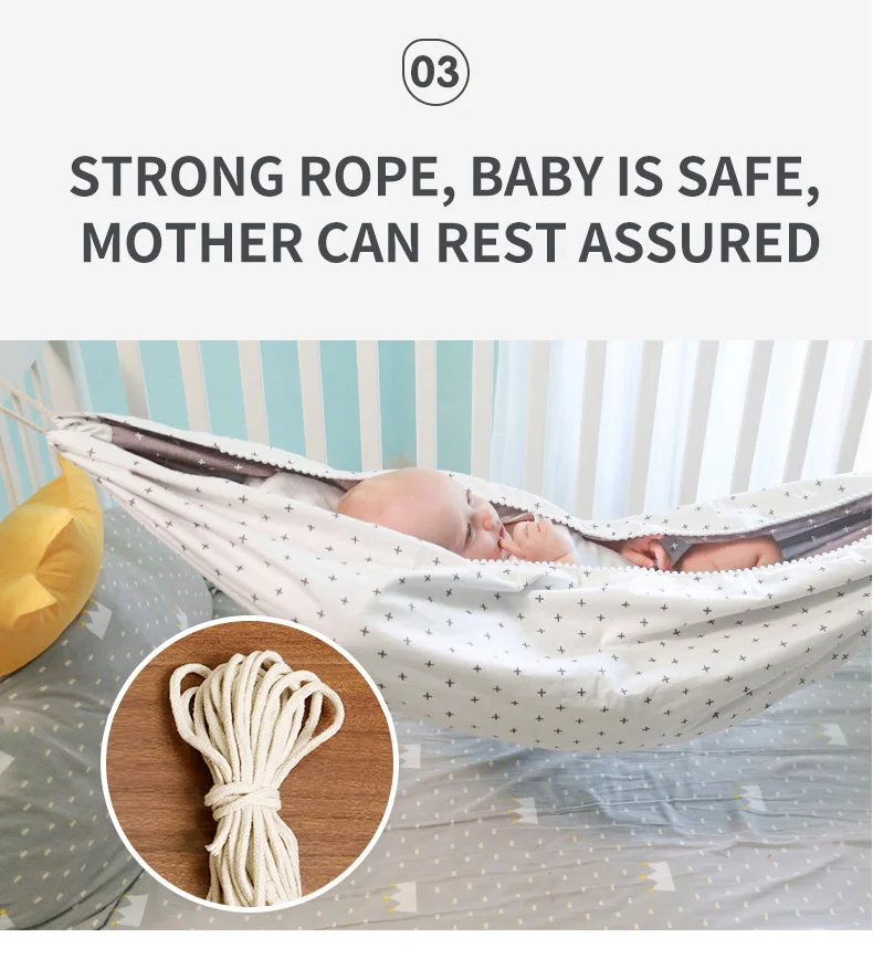 Baby Sleeping Safe Bed Hammock is an adjustable sleep cradle that can be used on the bed crib and also as an outdoor swing basket.