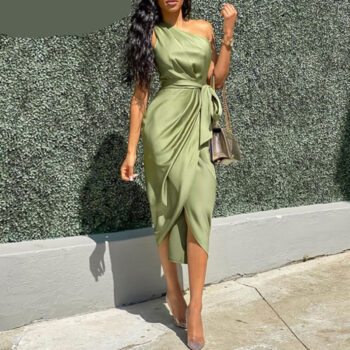 Belt Patchwork Knitted Sweater Dress is the symbol of elegance and femininity. In its version of shades, it sublimates the pure lines and simple silhouette. With buttons all the way up and on the shoulders, the dress gets more glamorous. The sleeves are slightly puffed and the V neck shape creates the perfect autumn winter dress.