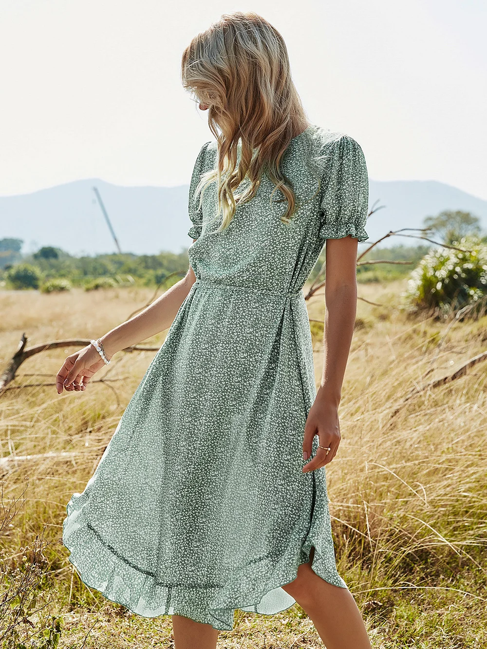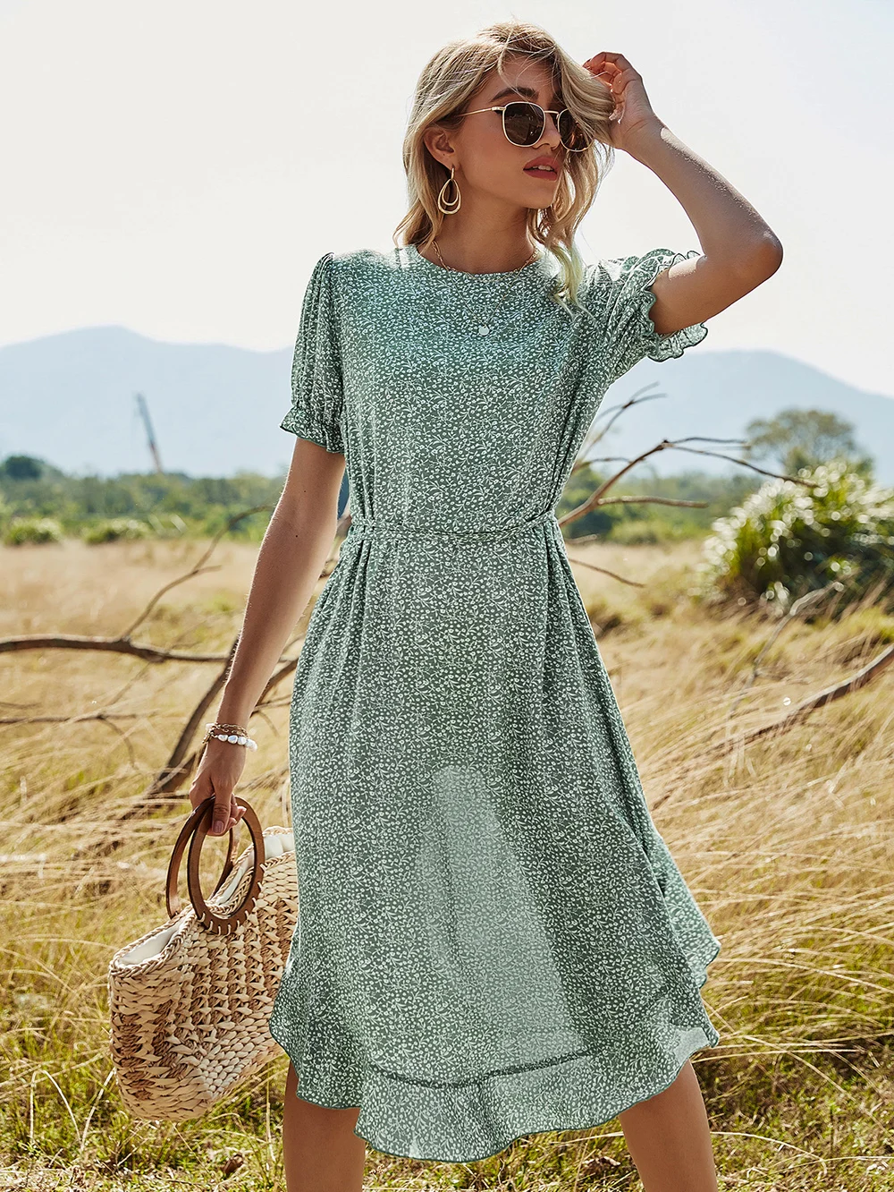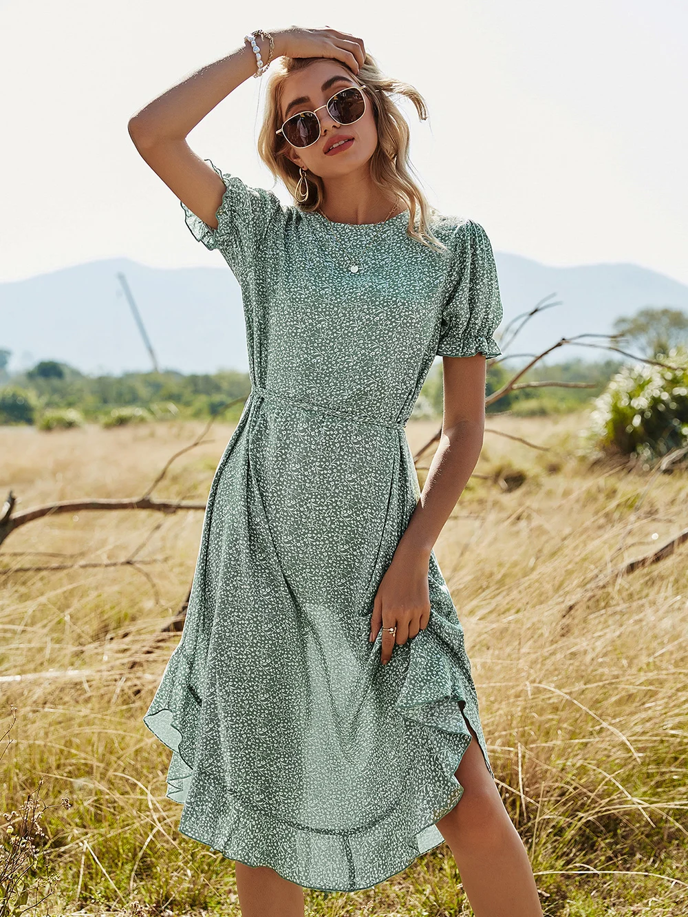 Asymmetrical Ruffle Hem Dress is a must for summertime! Floaty, romantic, chic, it is a very feminine dress to have! This dress adds breezy movement to the hem of this effortlessly chic, endlessly versatile dress.