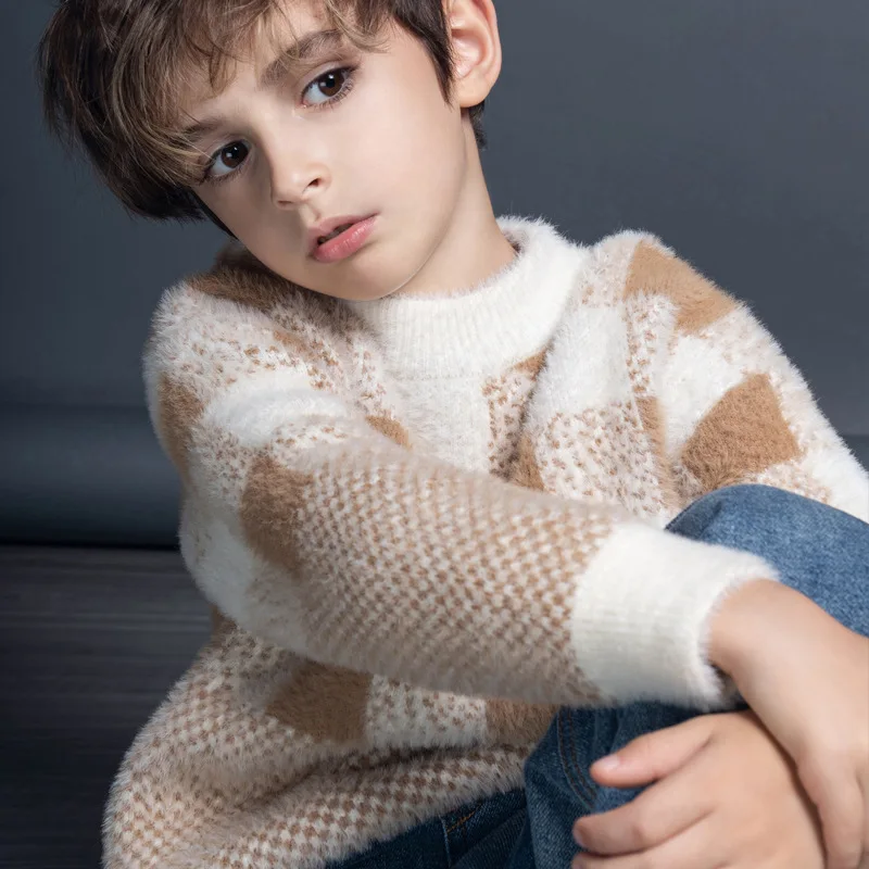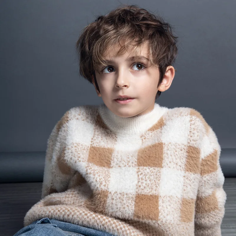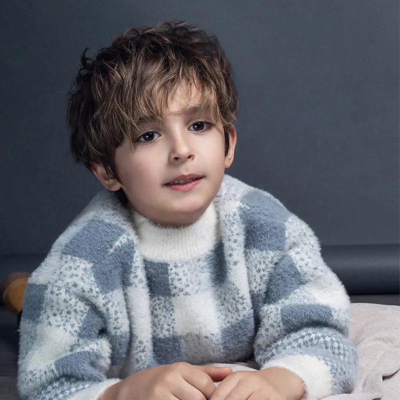 Boys Soft Patchwork Plaid Sweater