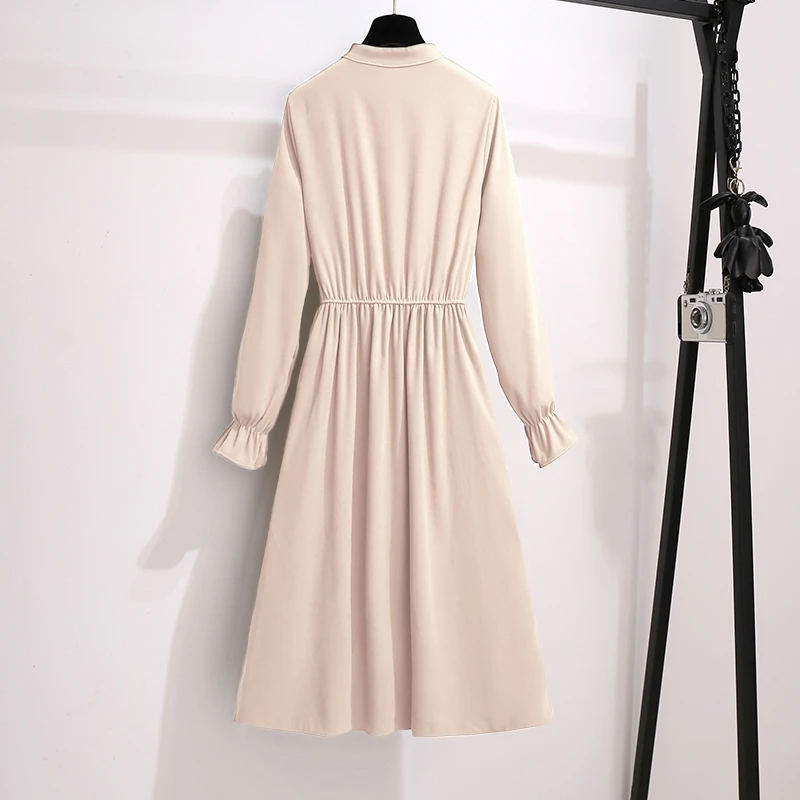 Butter Cream Neck Bow Midi Dress is a symbol of simplicity and elegance, at the same time. Its A-Line shape in a simple soft color makes it so special. The neck bow adds a chic and stylish part to it.