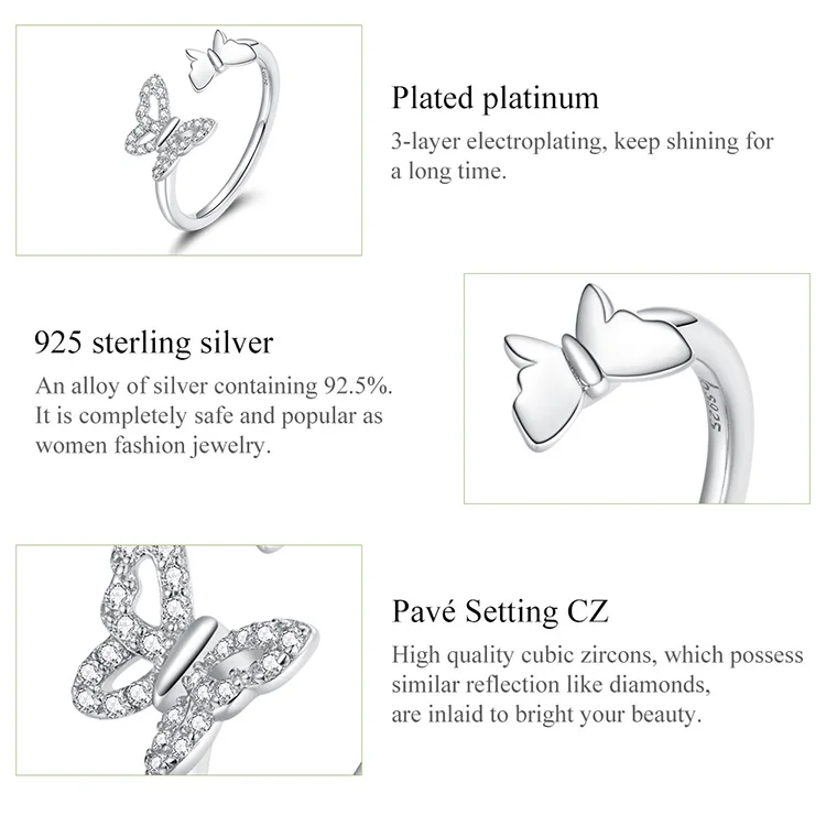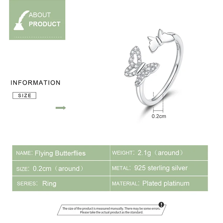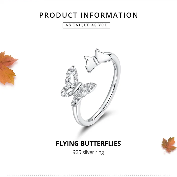 Butterfly 925 Sterling Silver Adjustable Women Ring