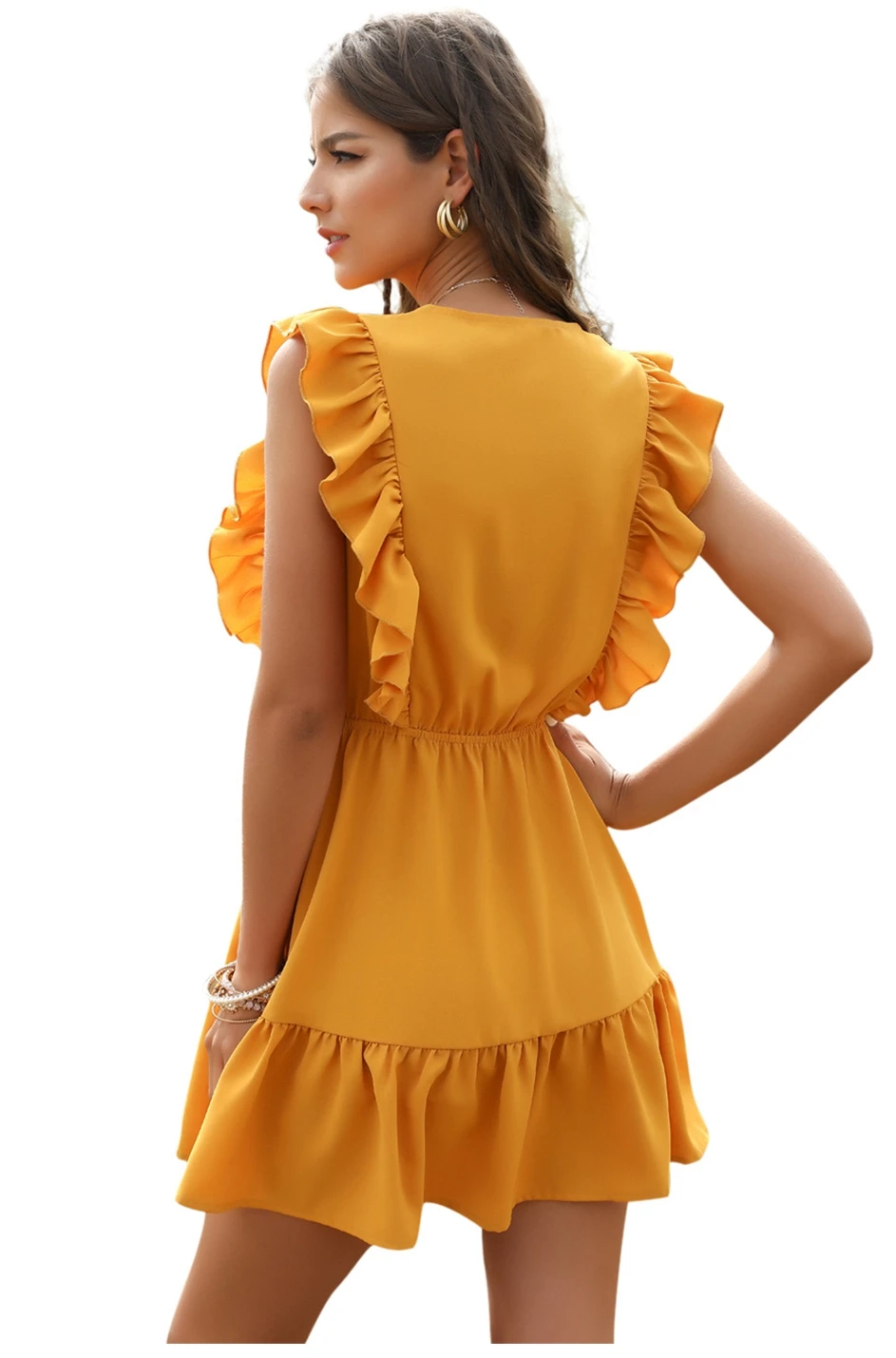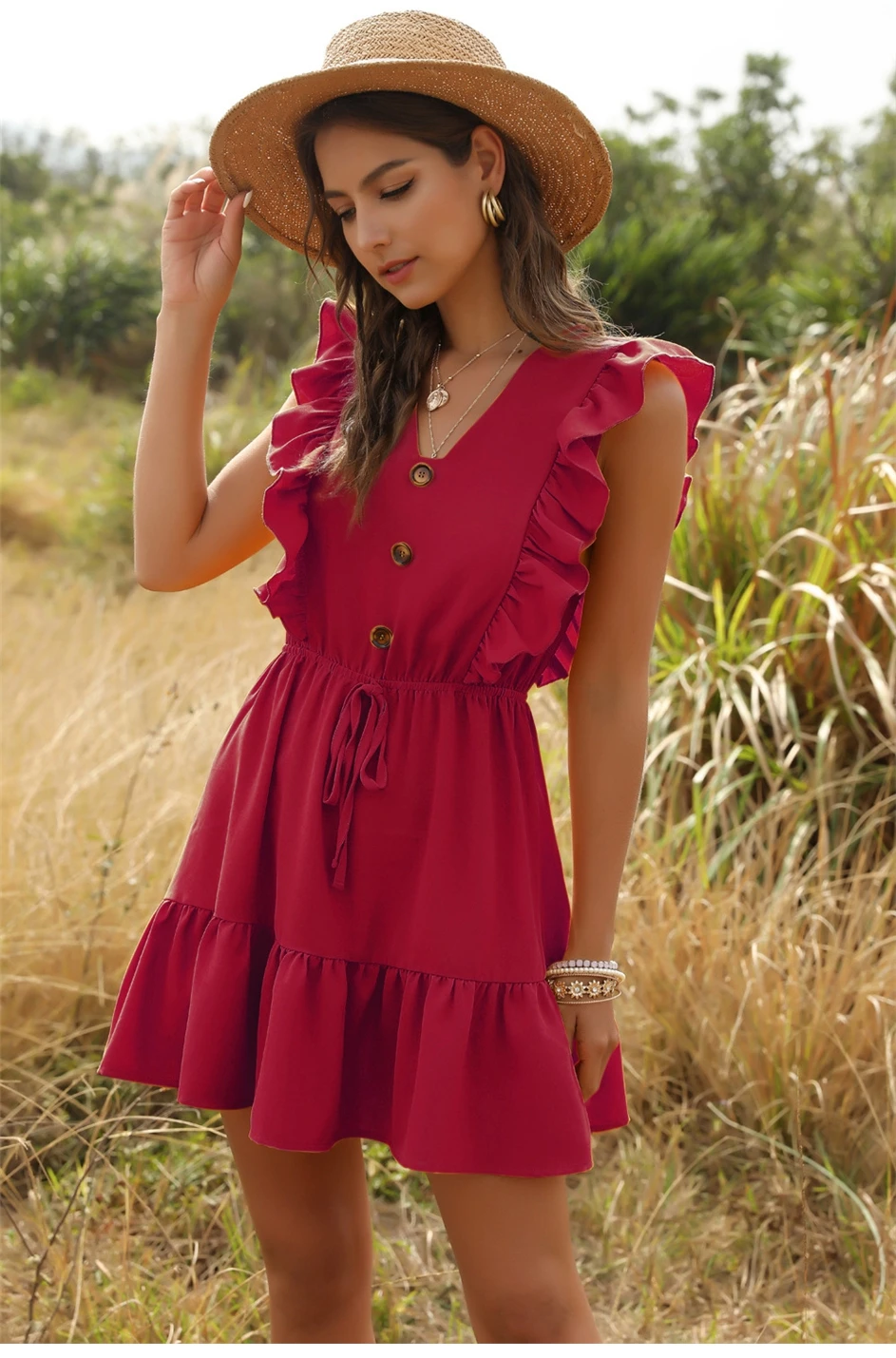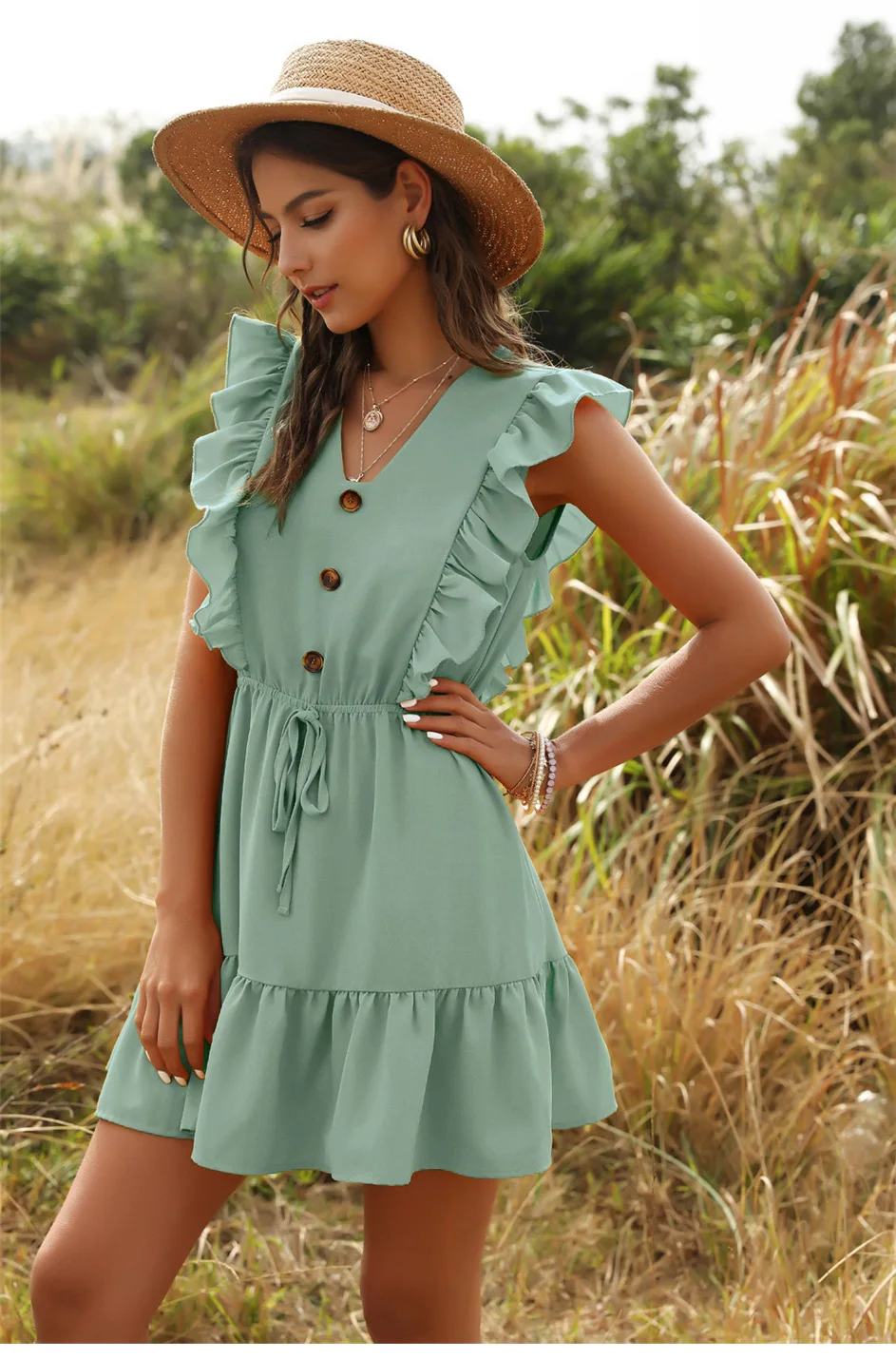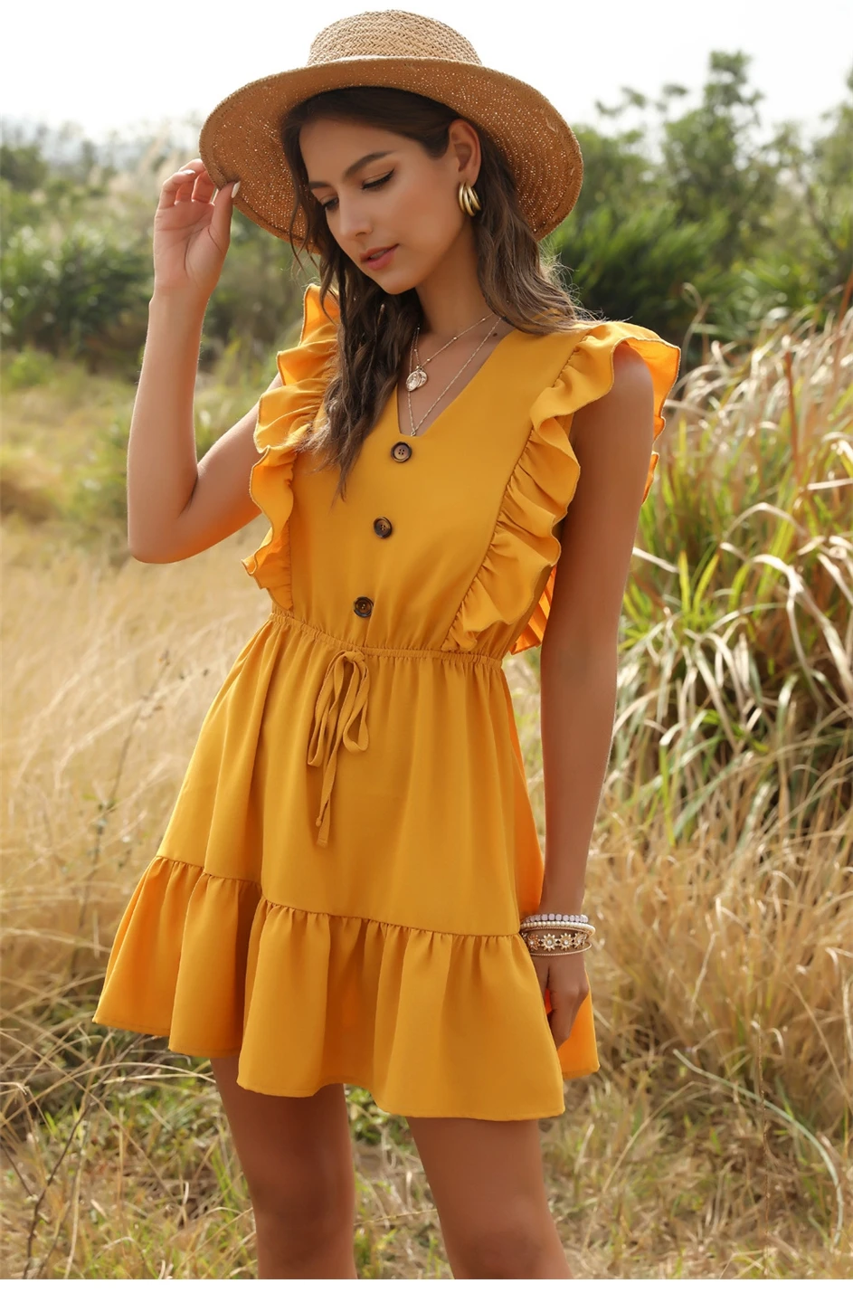 Buttons Bee Summer Casual Short Dress is the floaty chic dress to impress on your warm days. Beach style, casual street style, your days will be brighter and happier with this one.