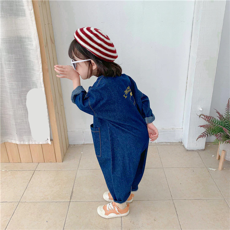 A casual denim jumpsuit that can fit both girls and boys creates such a cool look! For kids, it is even cuter!