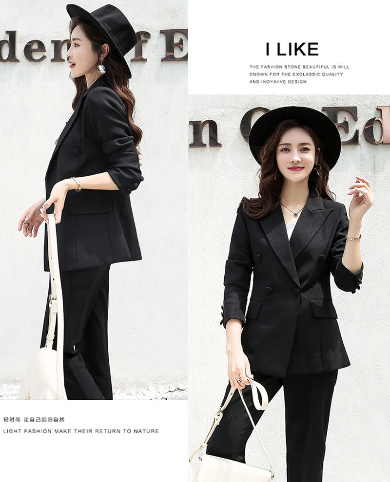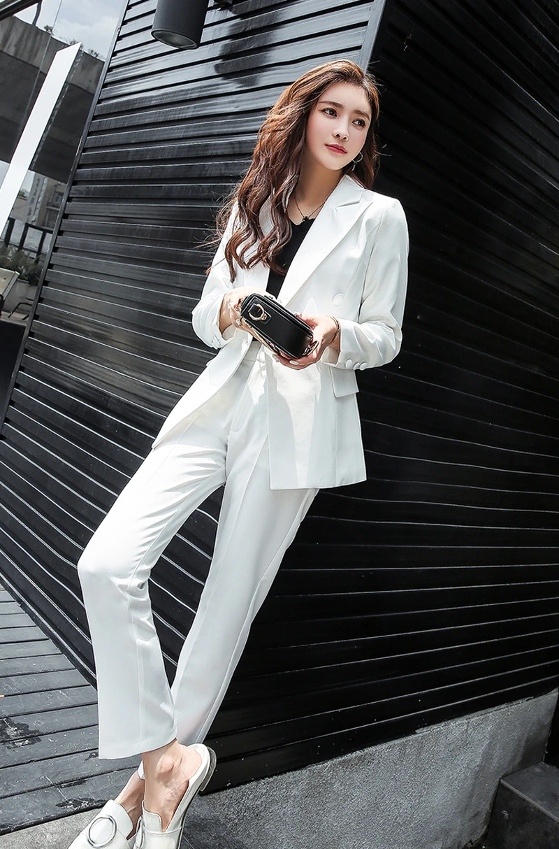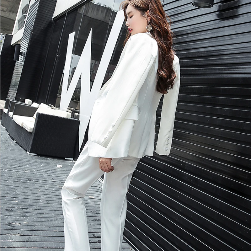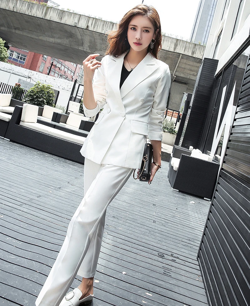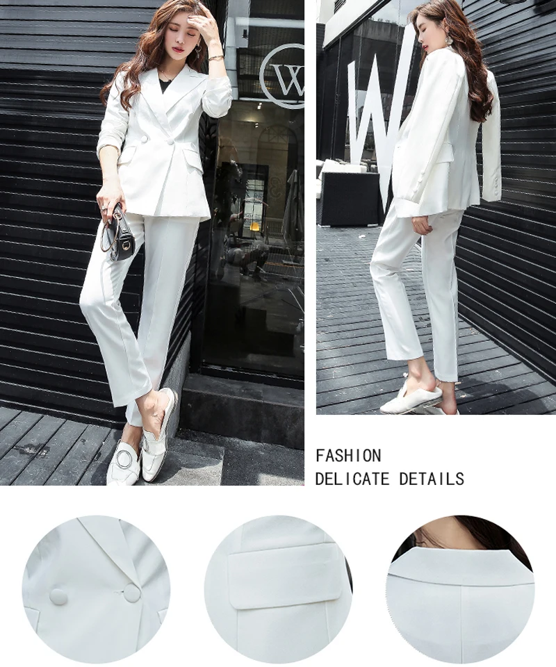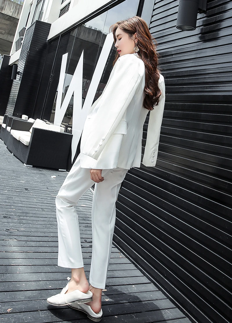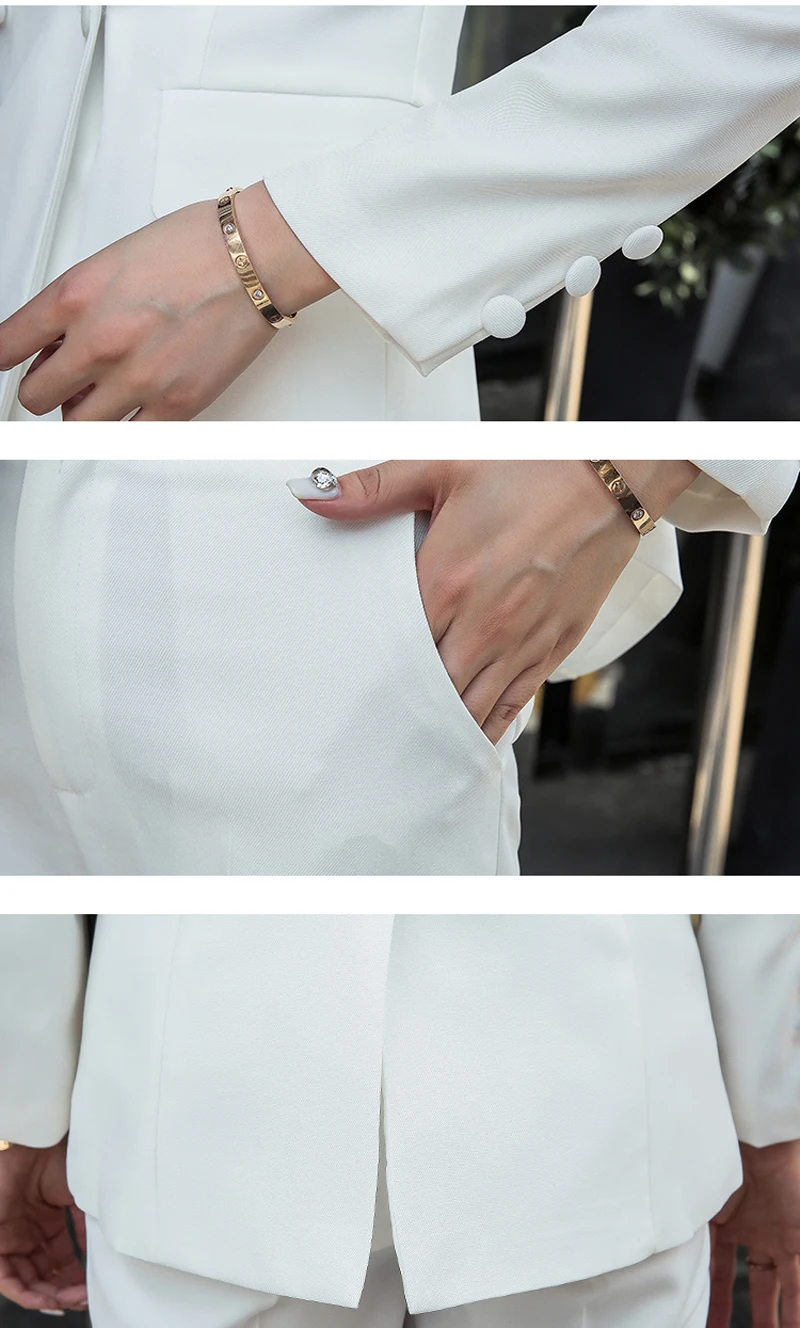 Double Breasted White Women Pant Suits with Collar Blazer Jacket