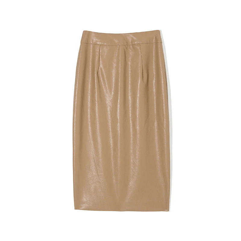 Coffee Elegant High Waist Faux Leather Pencil Skirt