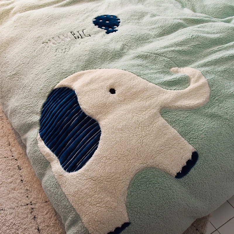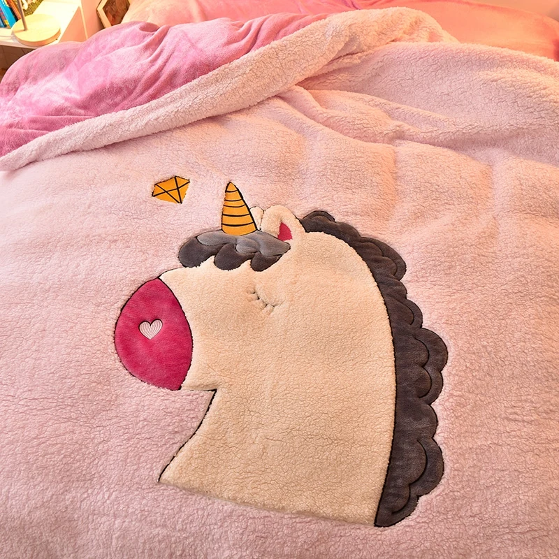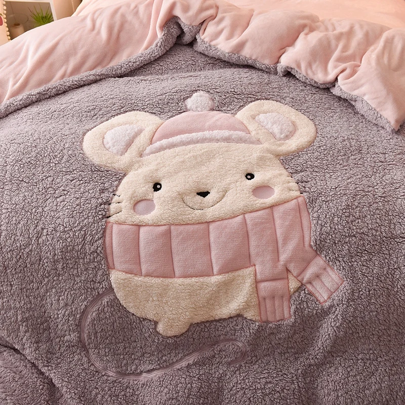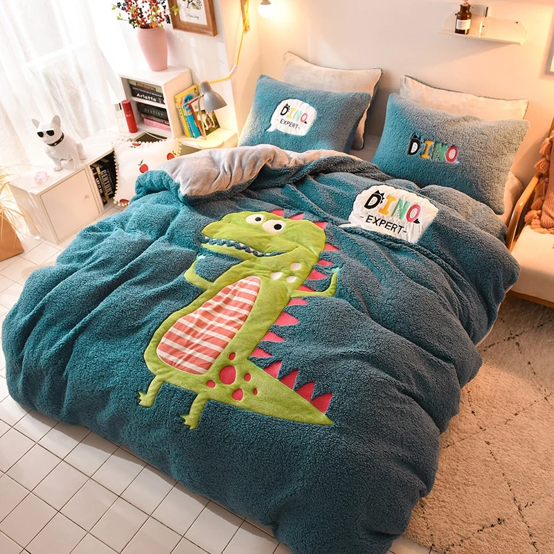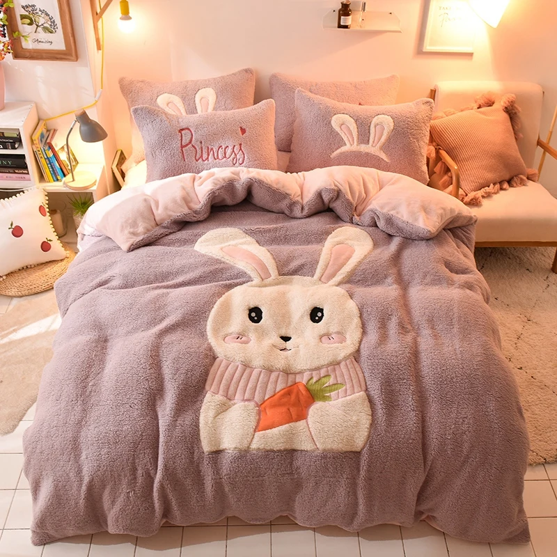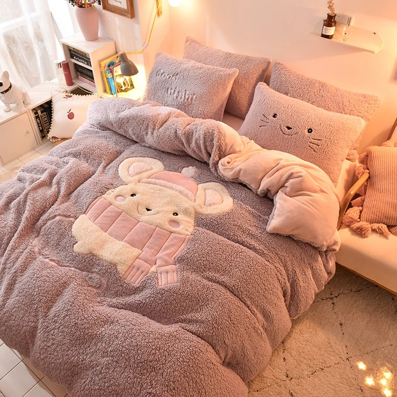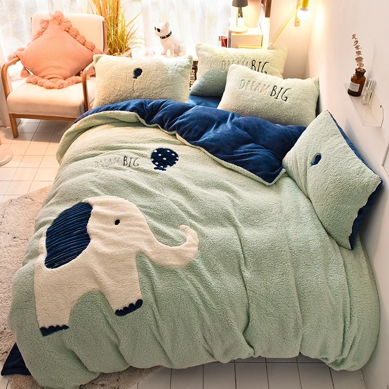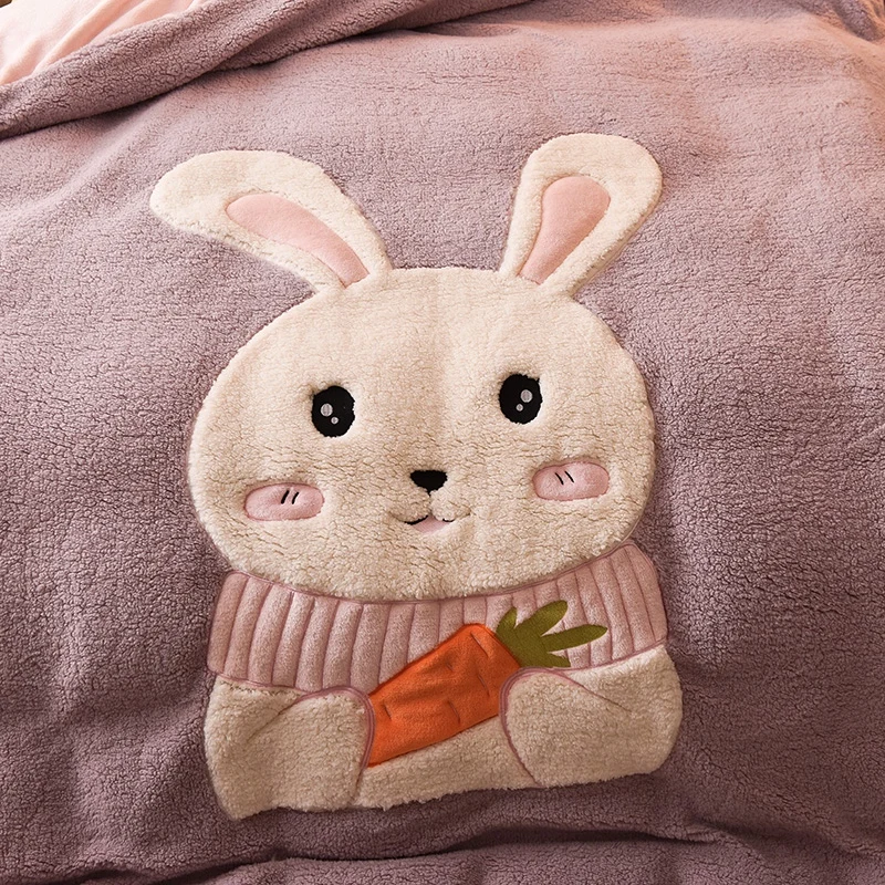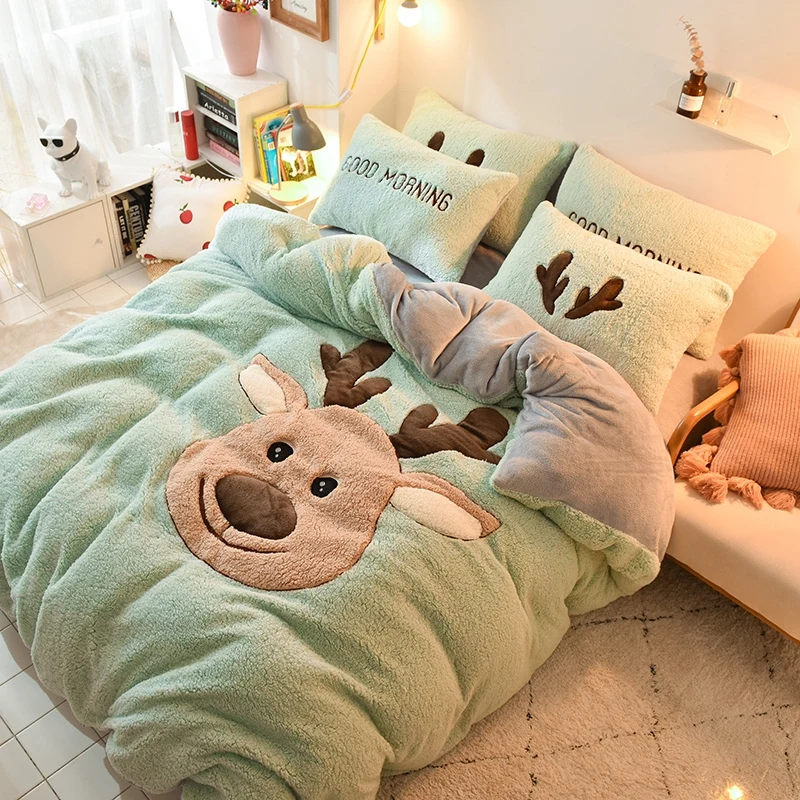 Deer Embroidery Flannel Bedding Set