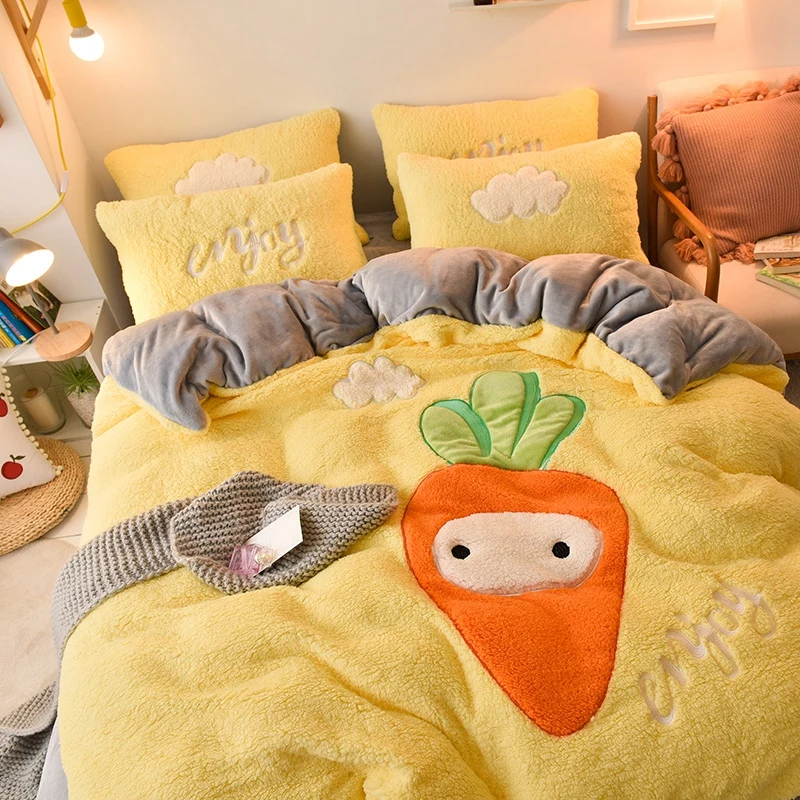 Material: The duvet cover outer side is made of Berber fleece fabric.