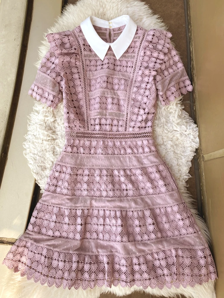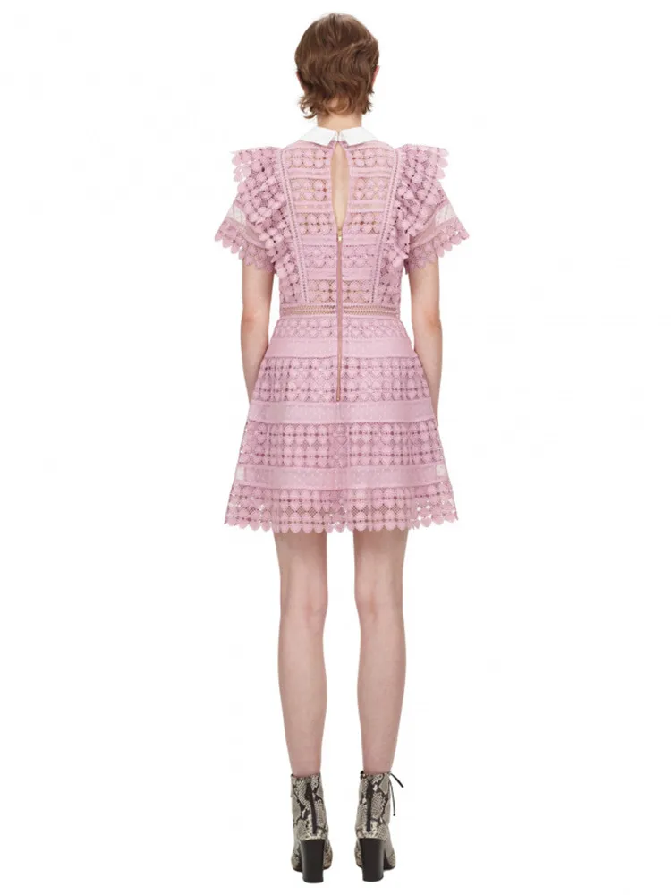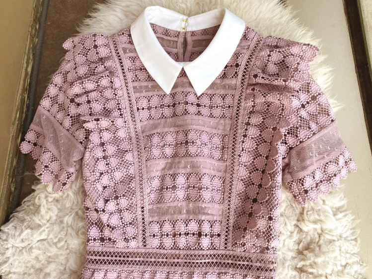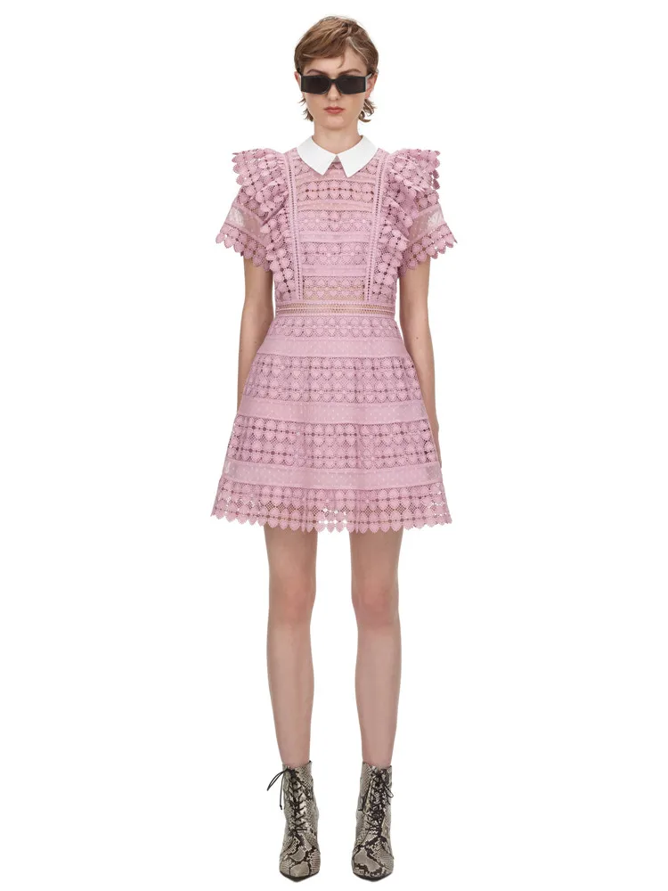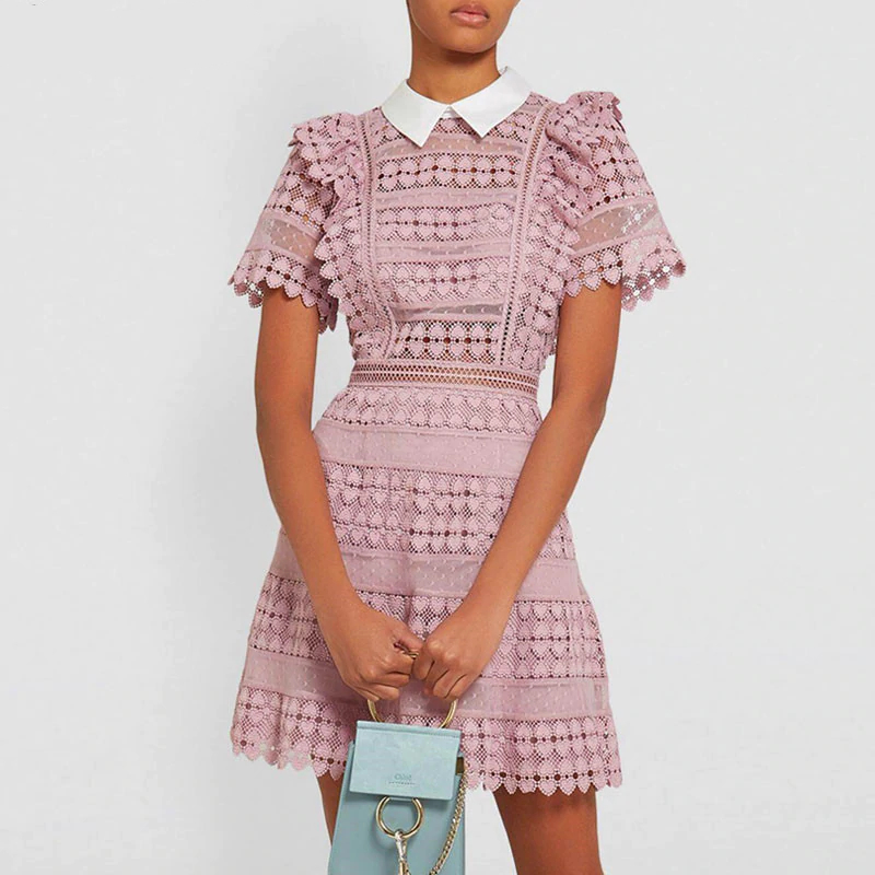 Dreamy Ruffle Lace Mini Dress with a pinky touch and a very fashionable A-line shape. It’s the perfect cocktail dress!