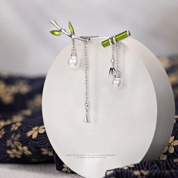 Silver Earring Bamboo Branch With Pearl Retro Style For Women