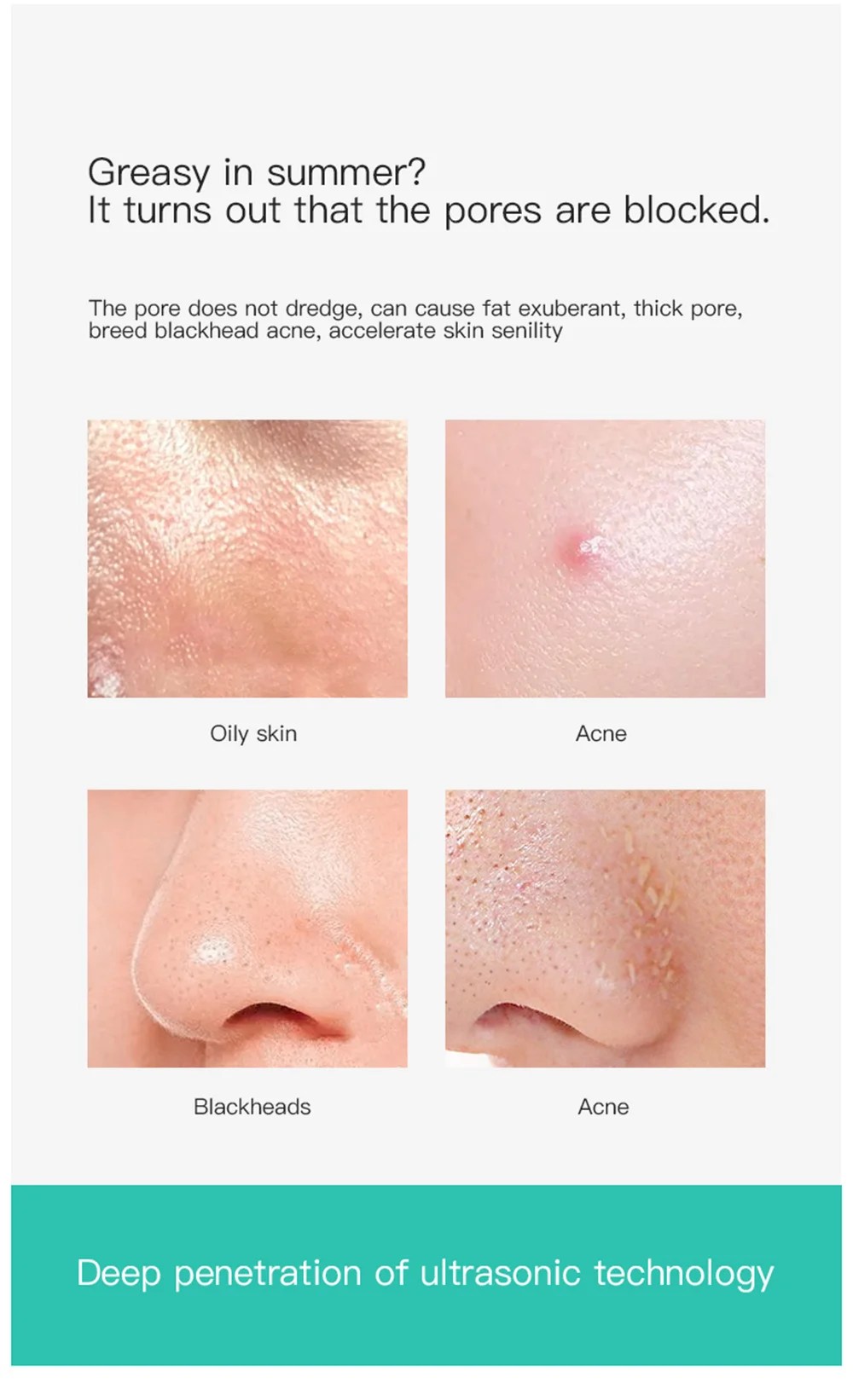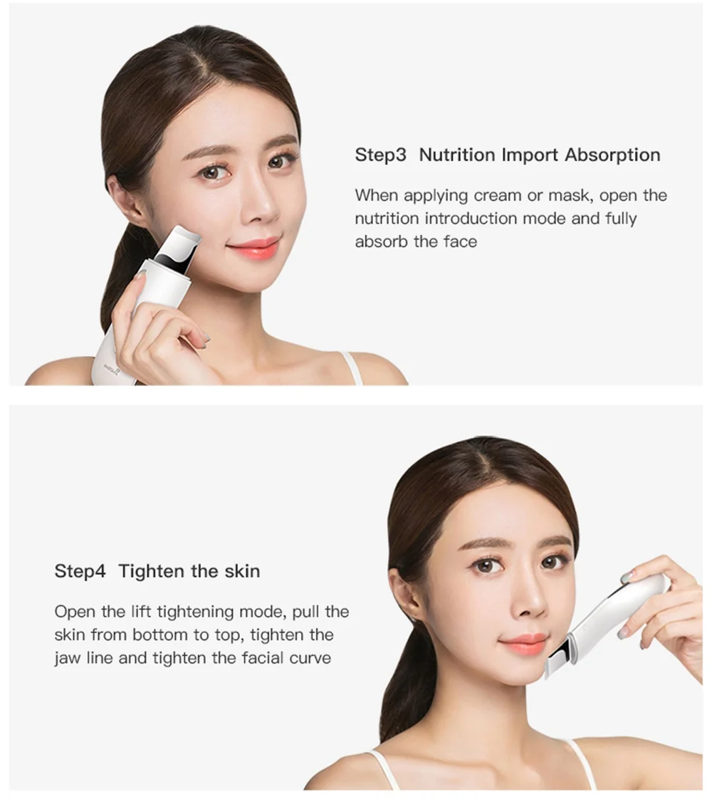2. Ultrasonic technology: through ultrasonic vibration atomization, the pores and dirt are vibrated out of the skin surface, gentle and not hurting the skin.