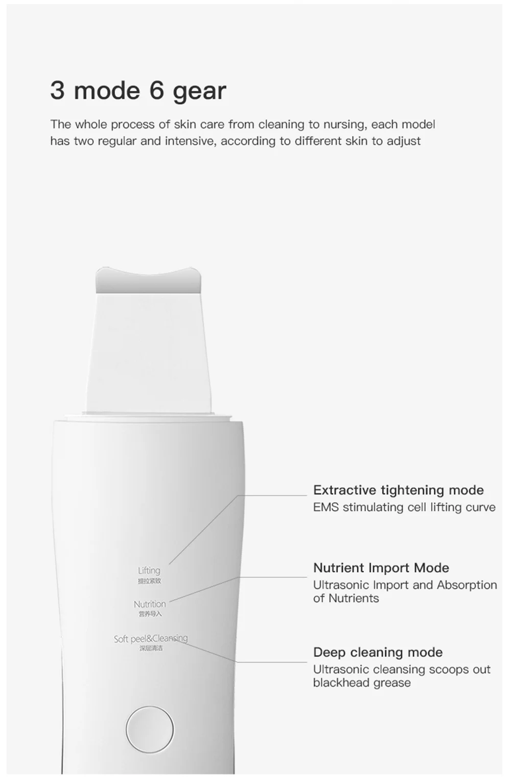 7.3 modes: lifting and firming mode, nutrition introduction mode, deep cleansing mode