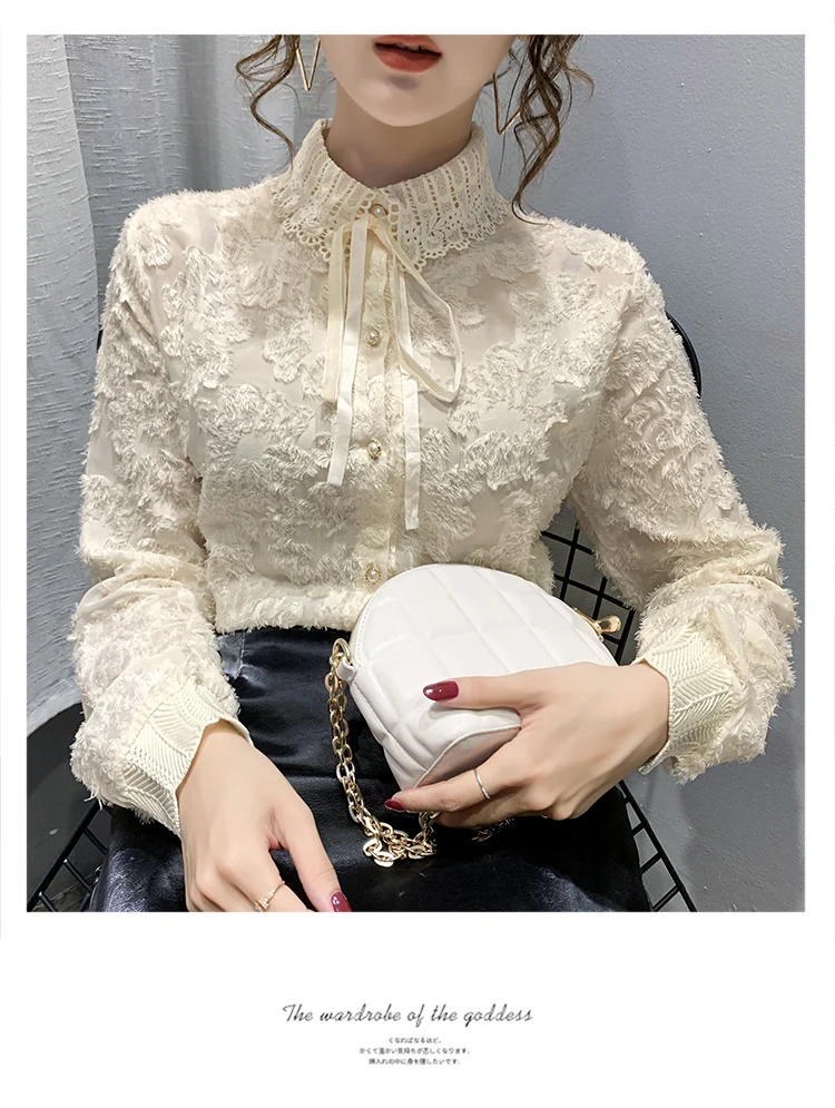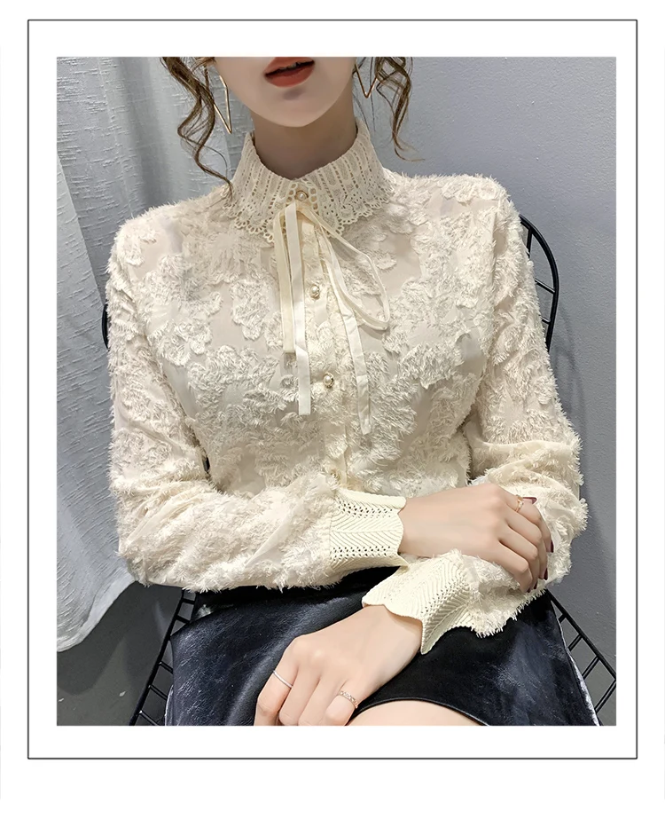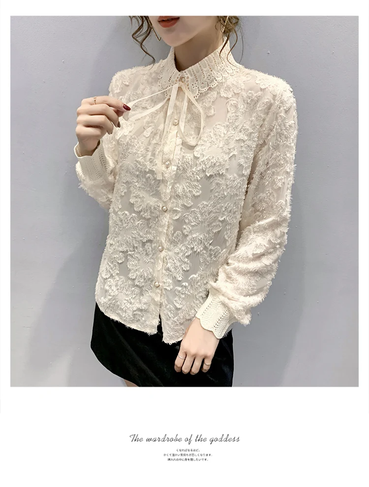 Embroidered Creamy Blouse Shirt With Collar is a royal blouse with a strong romantic style.
