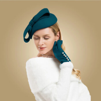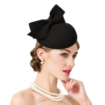 Luxury Wool Vintage Hat With Bowknot And Veil