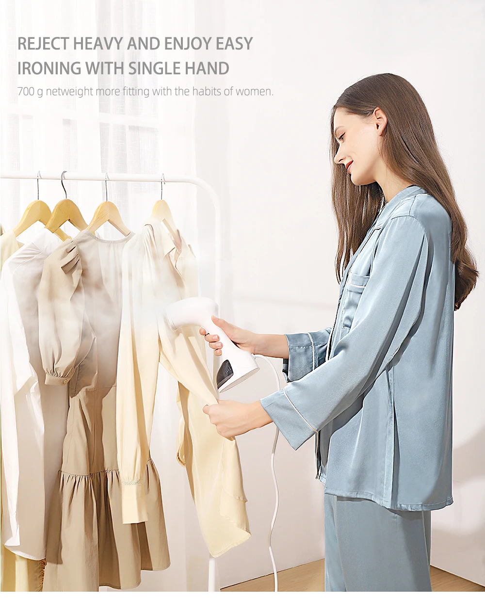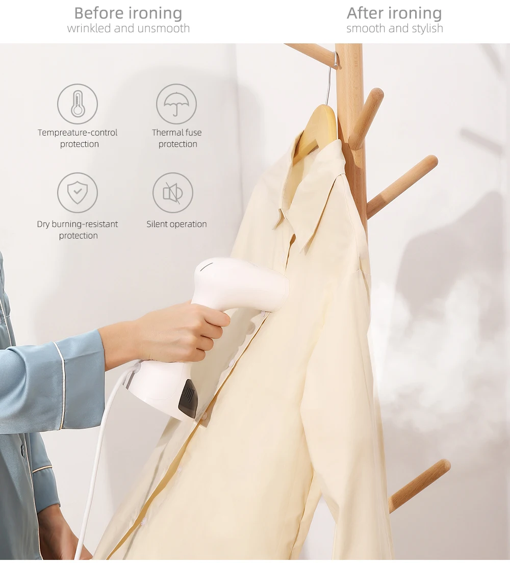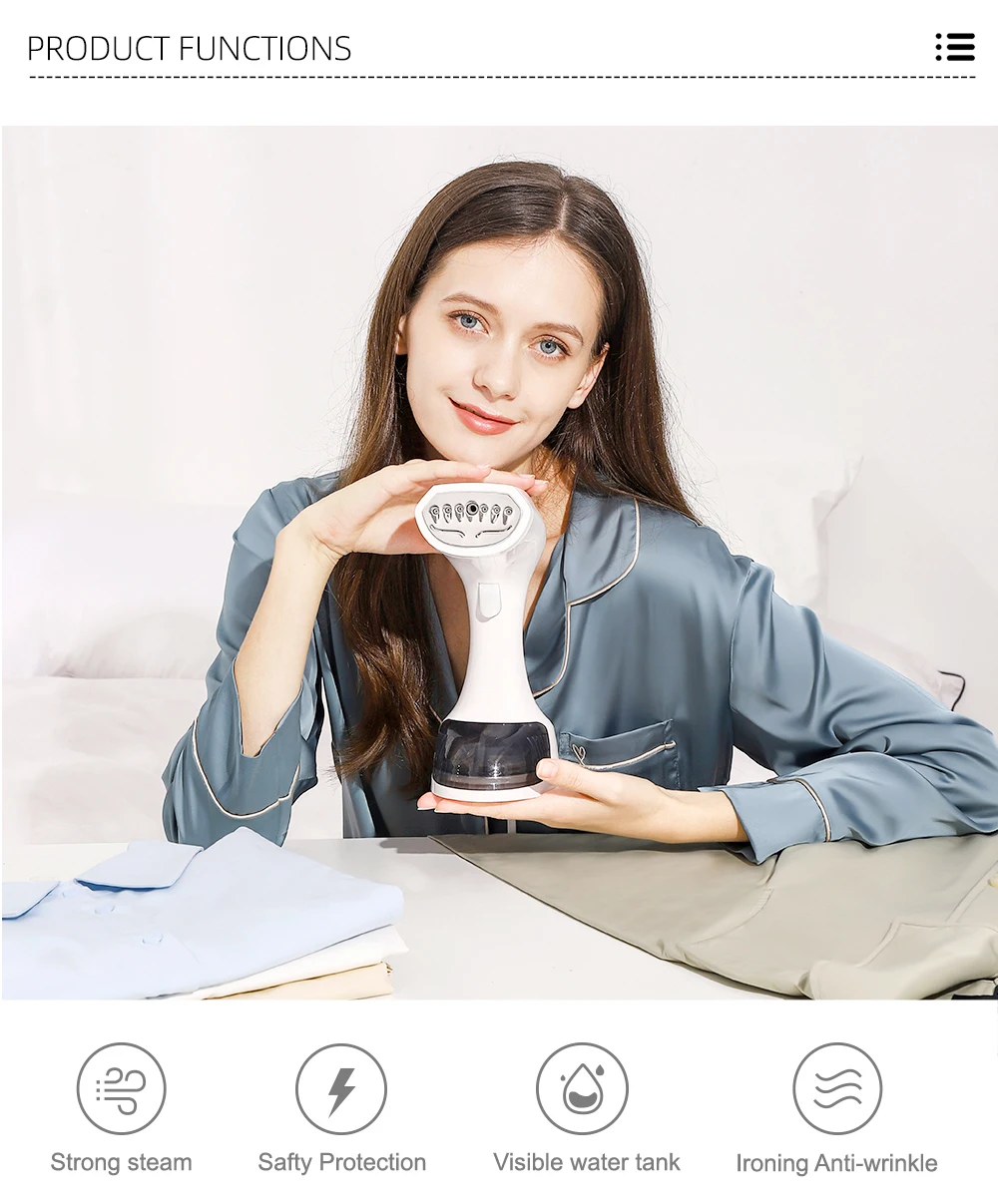 Handheld Steamer Household Ironing Garment has smart flow technology, the steam plate can be heated to various temperatures appropriate for all fabrics, preventing wet spots. Hot steam makes your clothes fresher and kills up to 99.99% of bacteria. Its lightweight, compact design enables it to be used anywhere, anytime, steaming just a little.