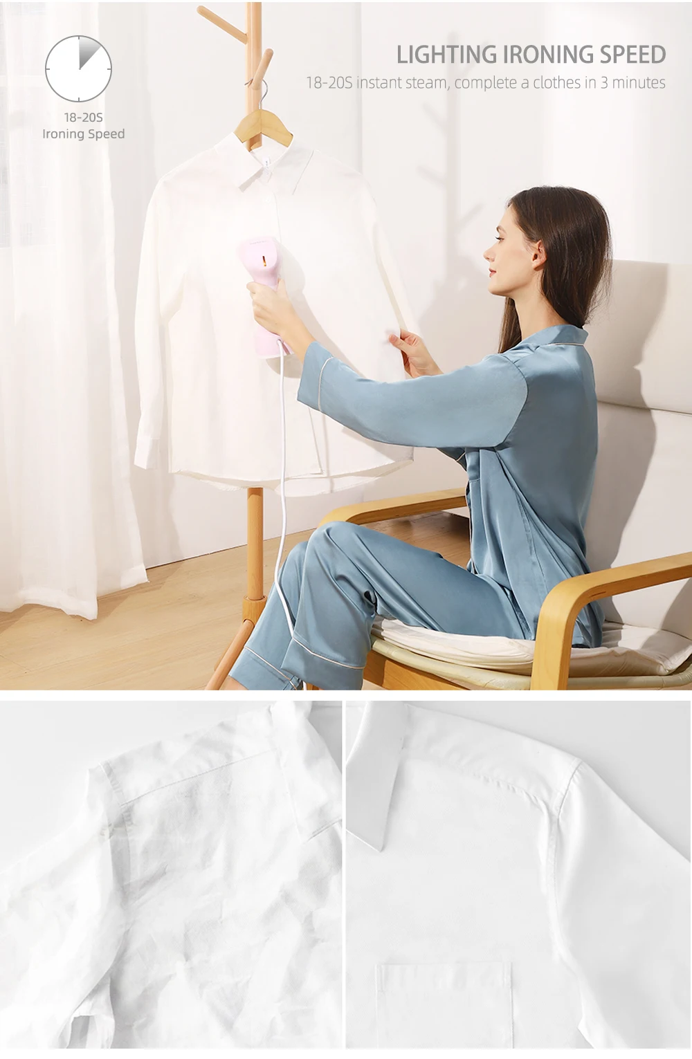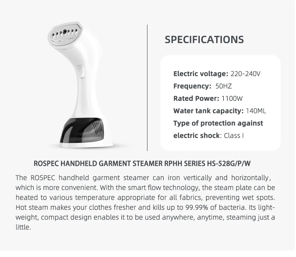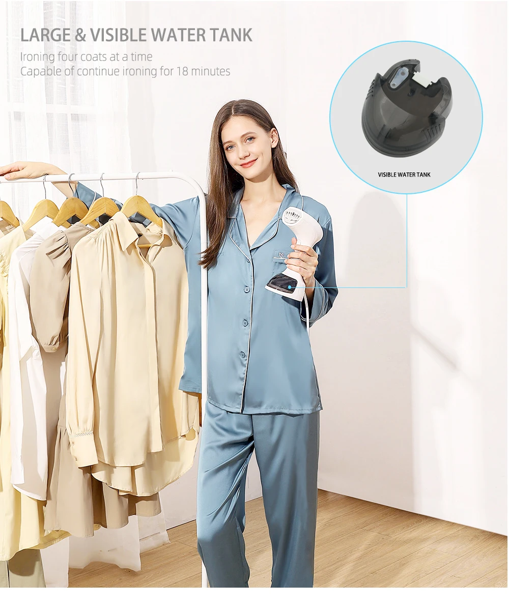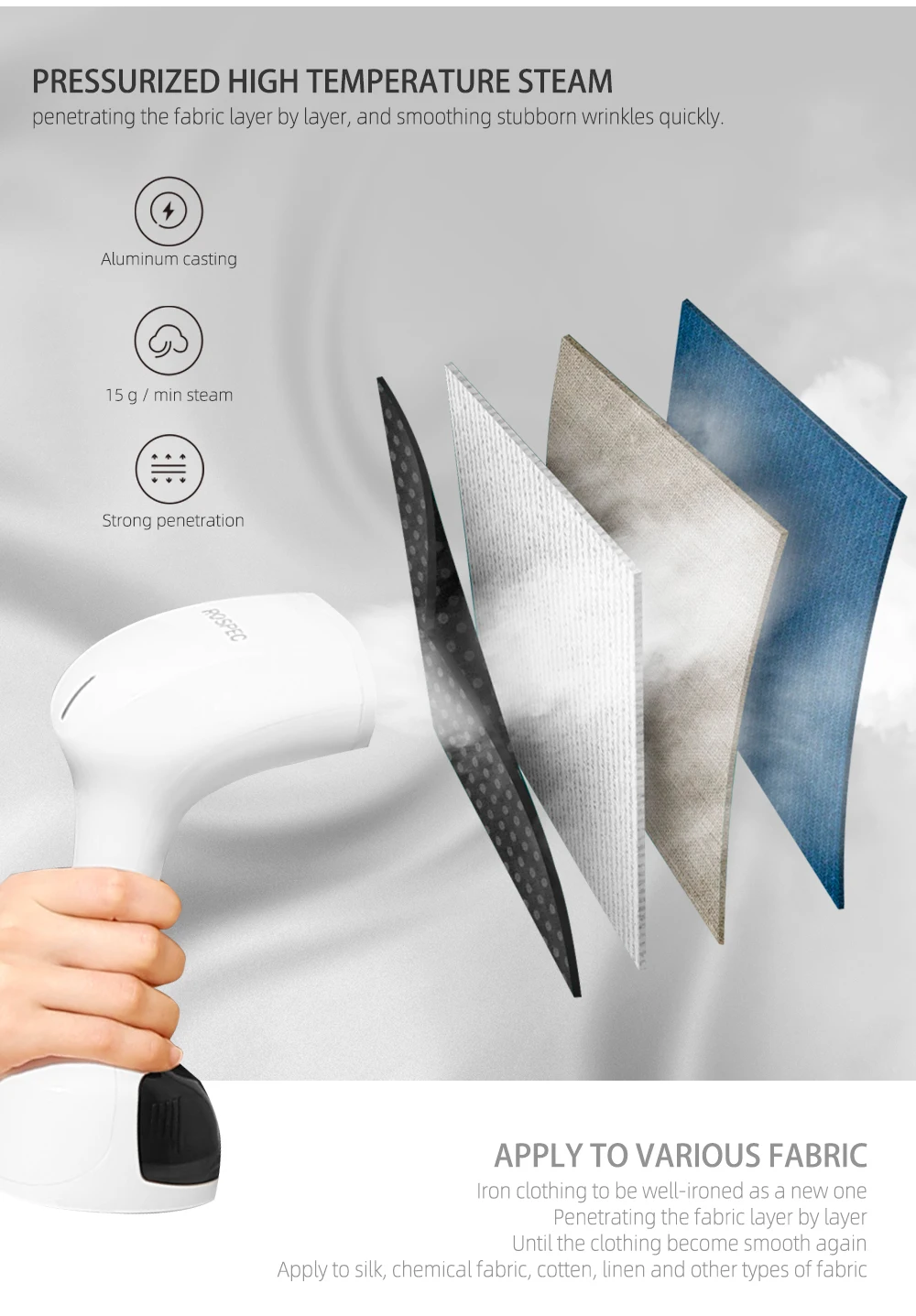 Handheld Steamer Household Ironing Garment has smart flow technology, the steam plate can be heated to various temperatures appropriate for all fabrics, preventing wet spots. Hot steam makes your clothes fresher and kills up to 99.99% of bacteria. Its lightweight, compact design enables it to be used anywhere, anytime, steaming just a little.
