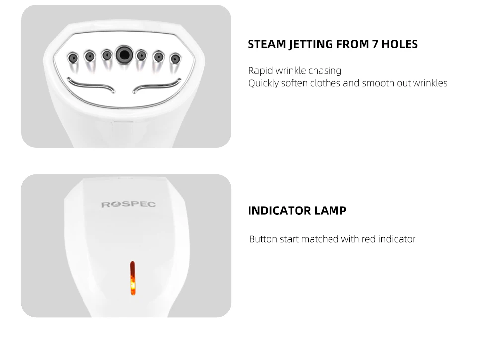1.Steam jetting from 7 holes—Rapid wrinkle chasing Quickly soften clothes and smooth out wrinkles