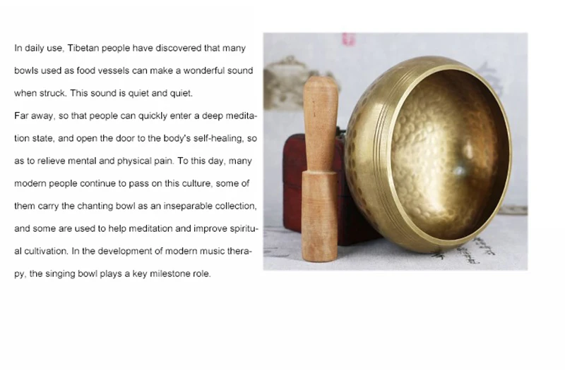 The sound of Nepalese singing bowls is clear and sweet, with deep inflections and resonance. Each has its own spirituality and its own characteristics. Knock it out, close your eyes, and feel it with your heart. You can relax the body and mind and purify the mind.