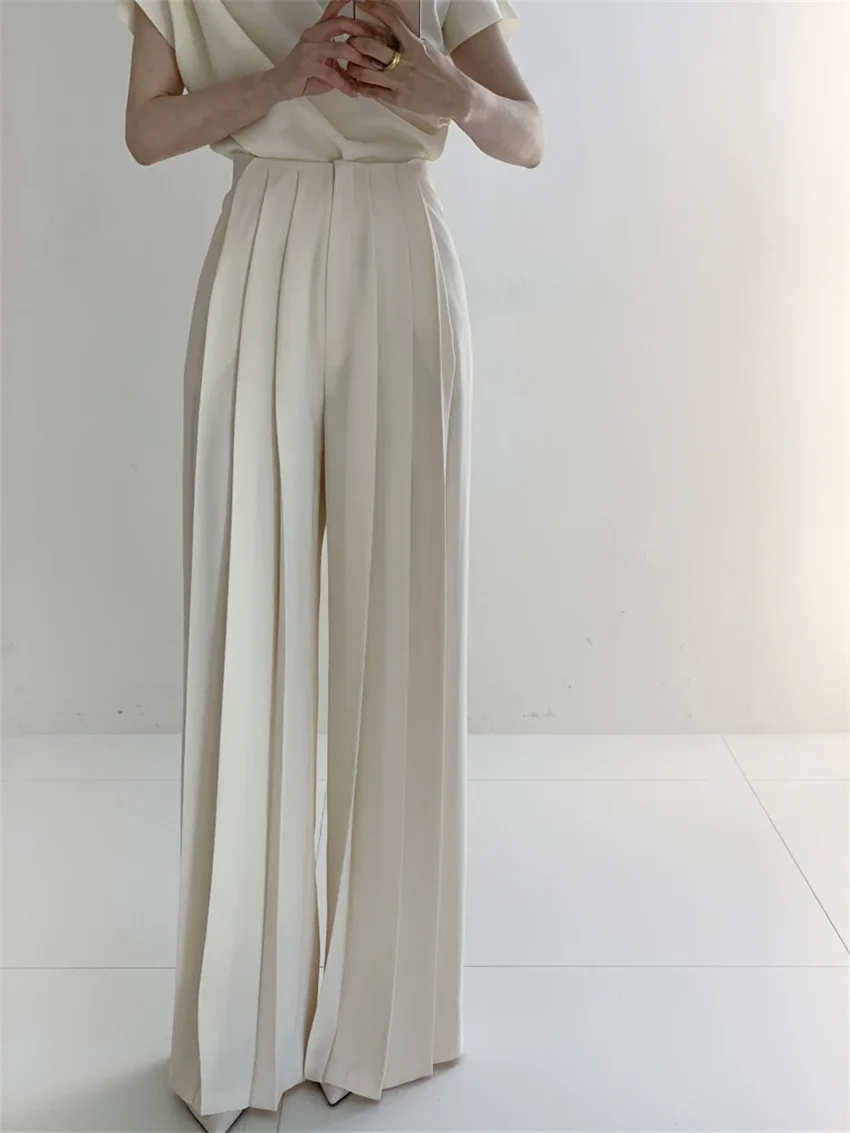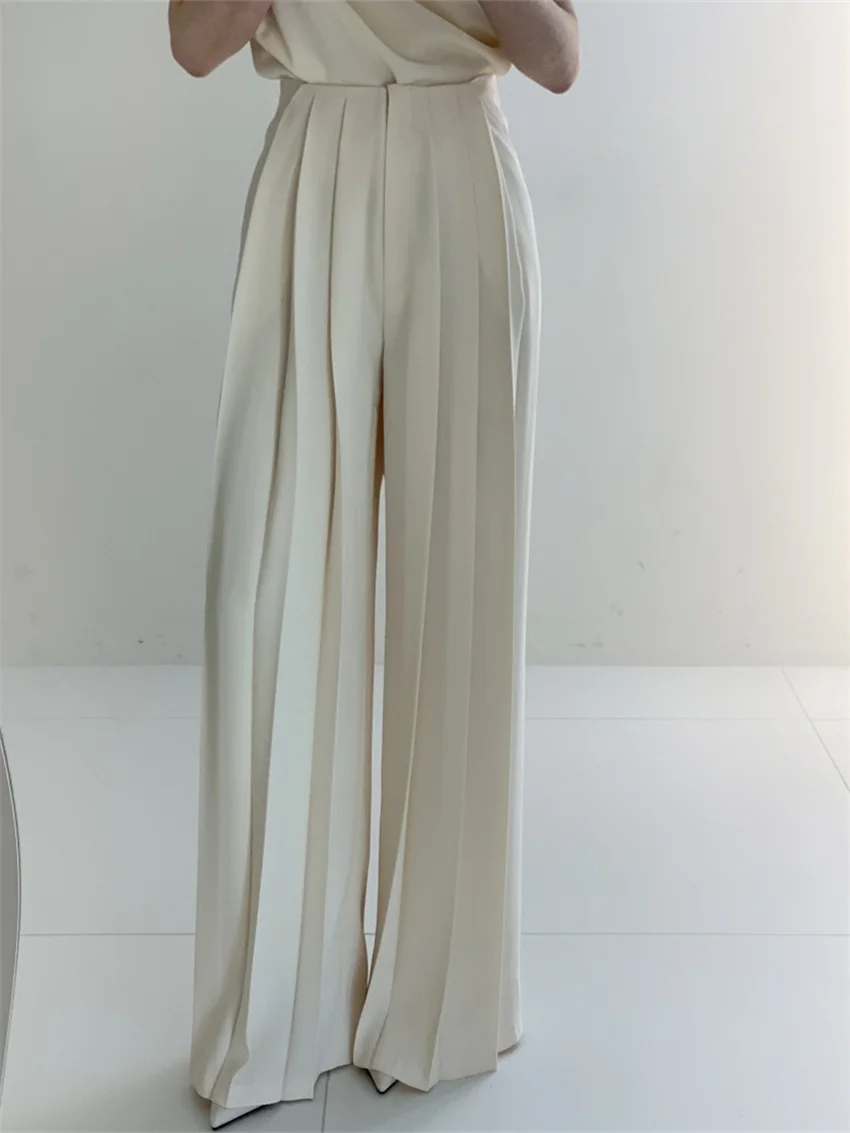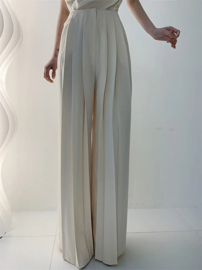 High Waist Pleated Wide Leg Trousers is an elegant casual that you can wear in any season. Such class!