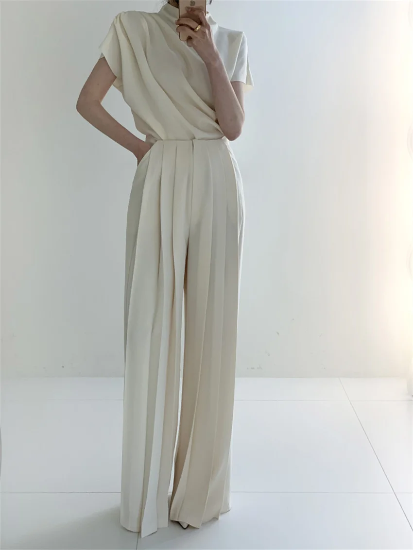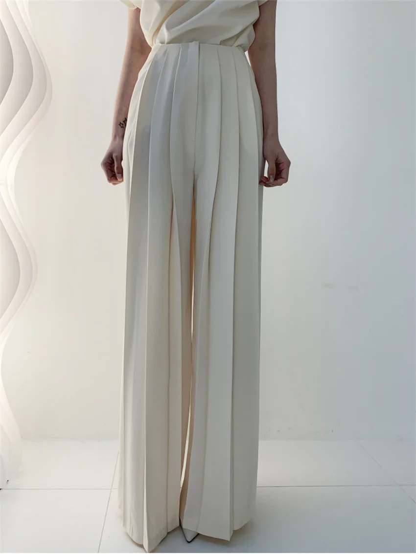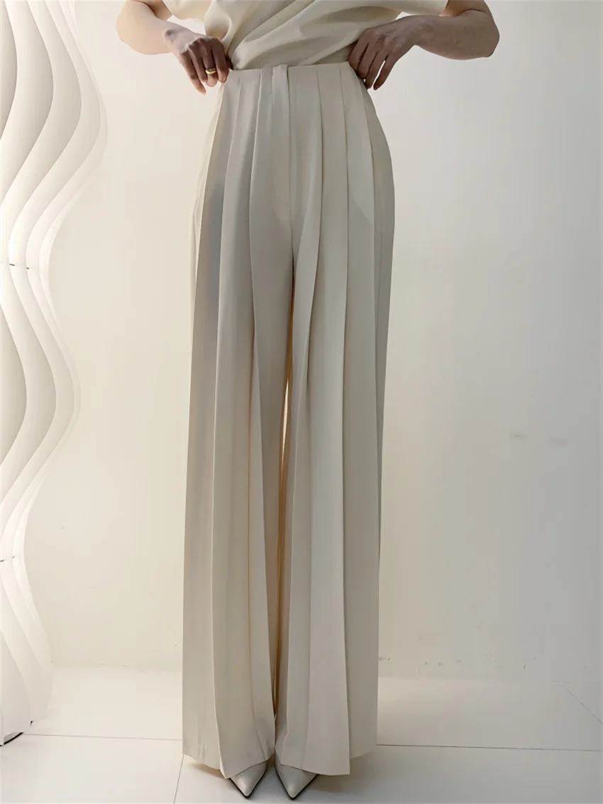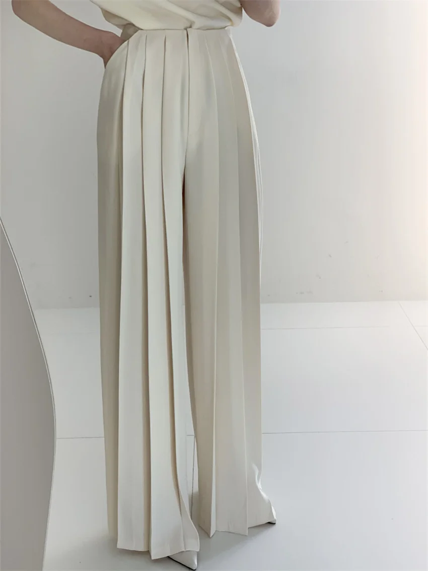 High Waist Pleated Wide Leg Trousers is an elegant casual that you can wear in any season. Such class!