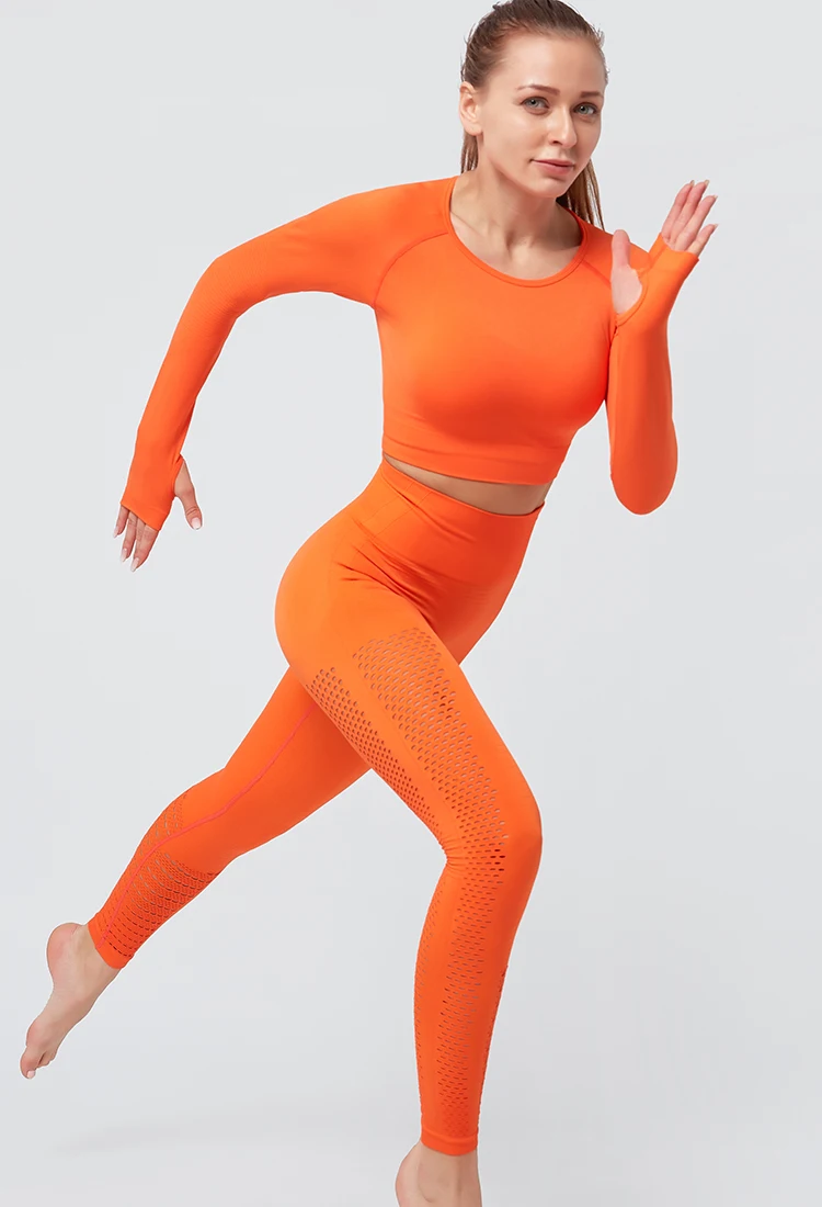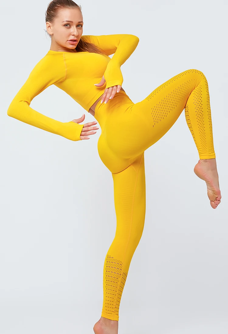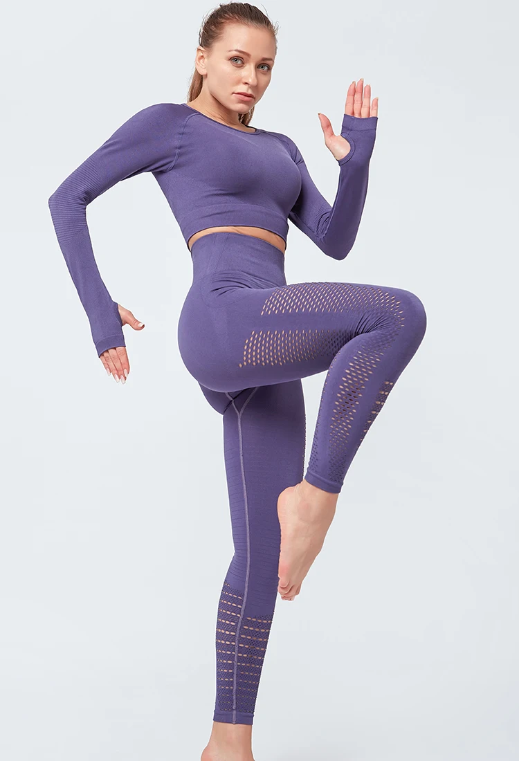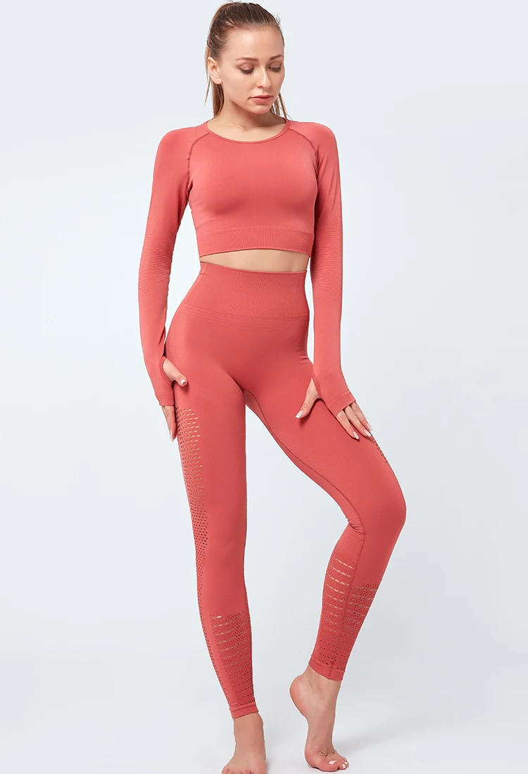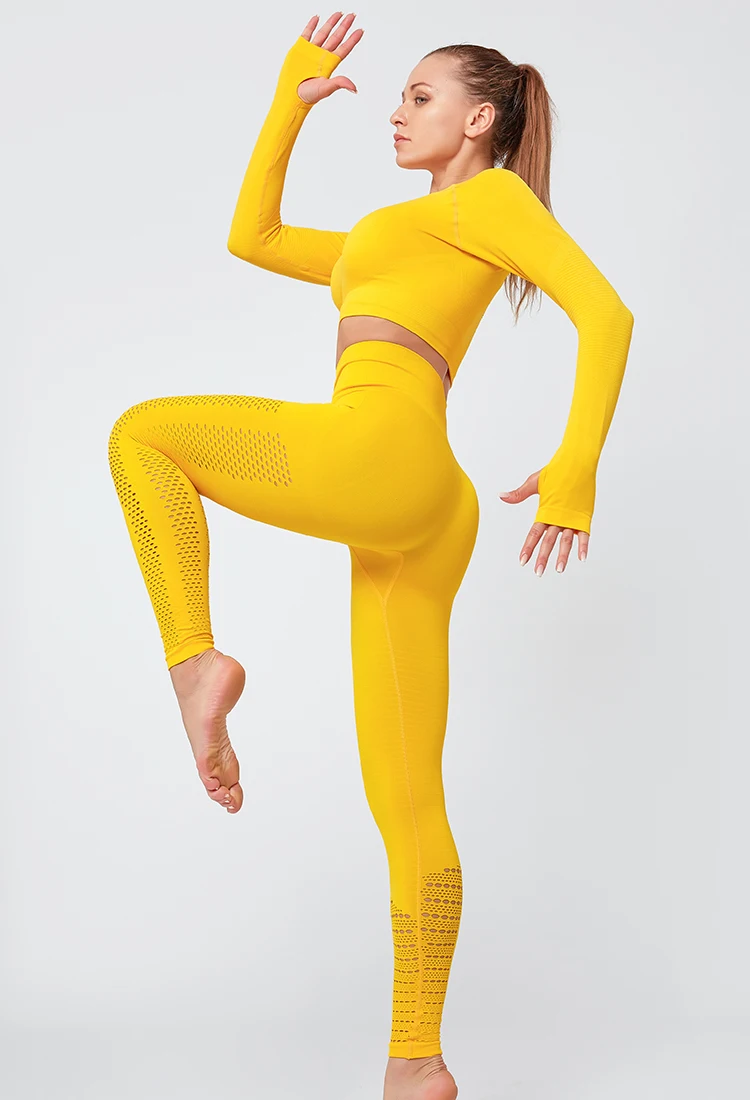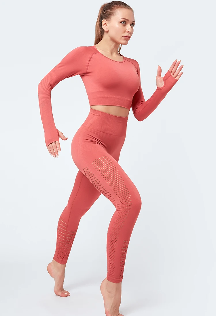 Hollow Crop Top And High Waist Leggings Activewear Set