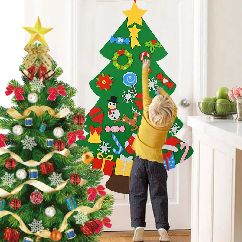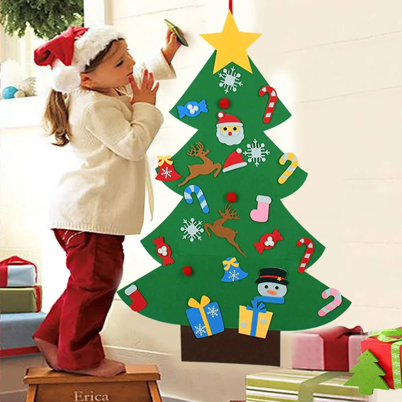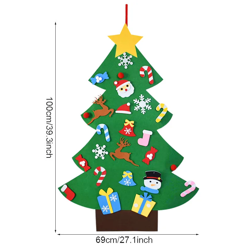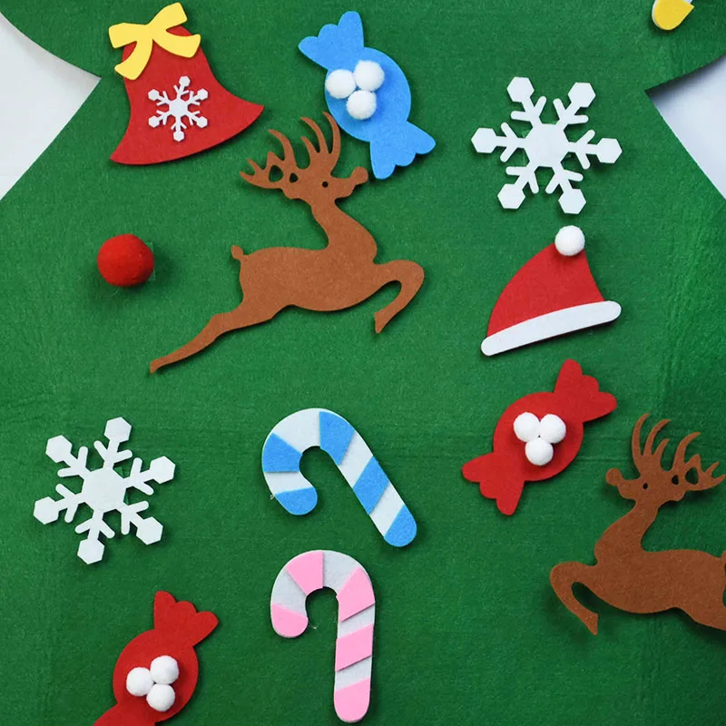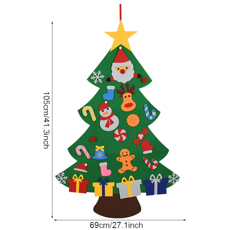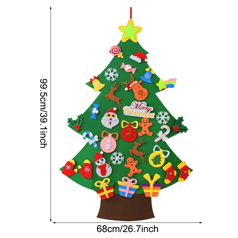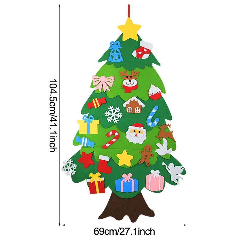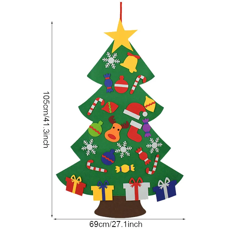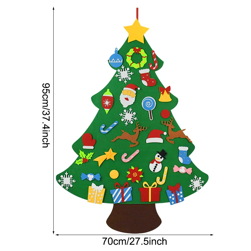 This Christmas tree pendant is made of high-grade, non-toxic, environmentally friendly felt allowing children to freely stick ornaments on anywhere of the tree.
