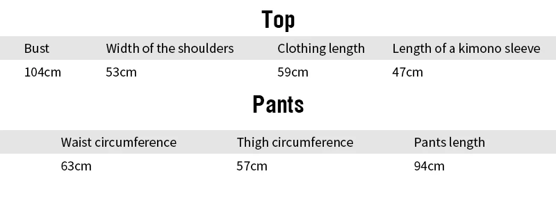SizeBustShoulderLengthSleeve LengthWaistPant Length