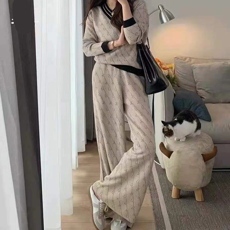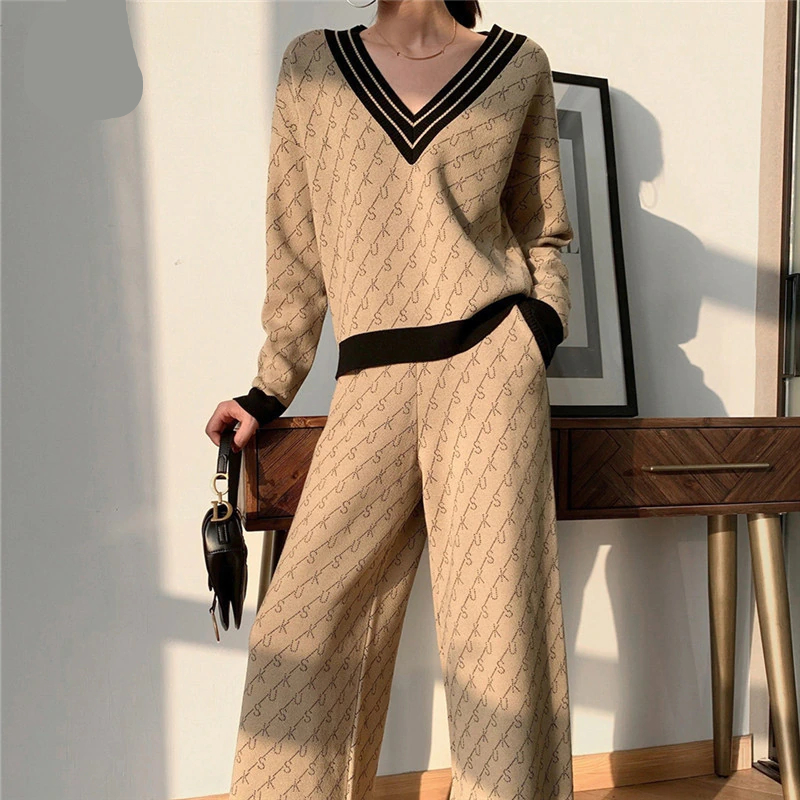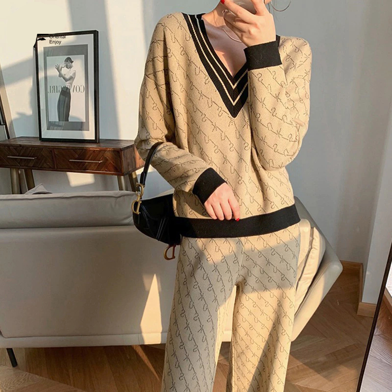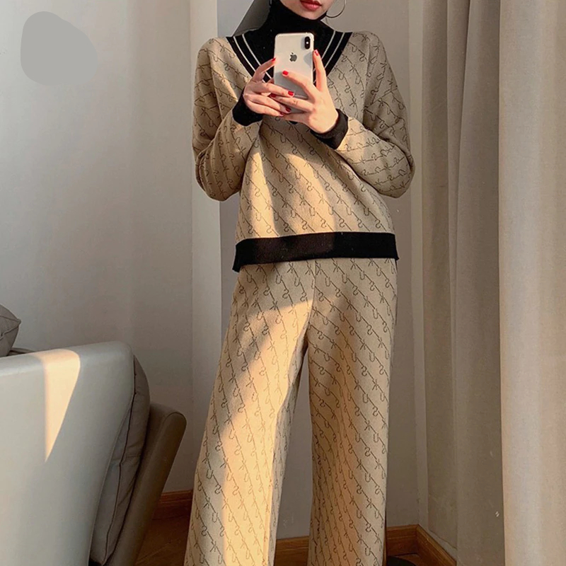 Knitted Wide Leg Pants And Sweater Set is a tracksuit following the latest fashion trends. Perfect for the autumn-winter season, being chic and cozy at the same time!