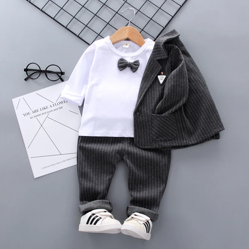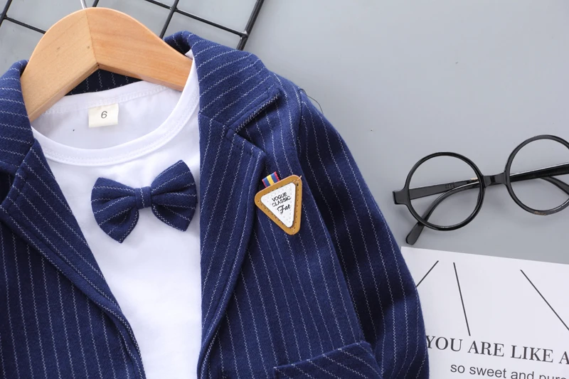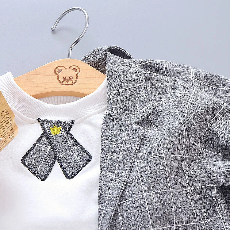 The Little Gentleman Cotton Suit is very elegant and stylish. It includes 3 pieces: Suit & T-Shirt Age: 0-4 Years