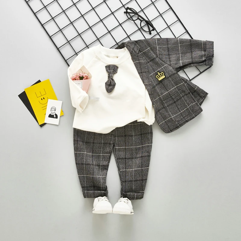 Great three-piece suit. With discounts it was 871 rubles. Ordered 27.08.20 arrived 22.09.20 the quality is good, the butterfly is sewn, which is very good, the turtleneck has a very dense and soft material, which is excellent. We have 1 year of growth of 79, chose by table. On the jacket from the inside and pants stick out threads, then not critical.