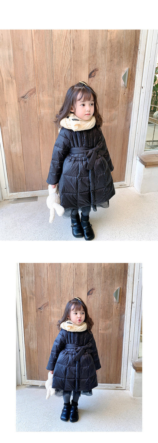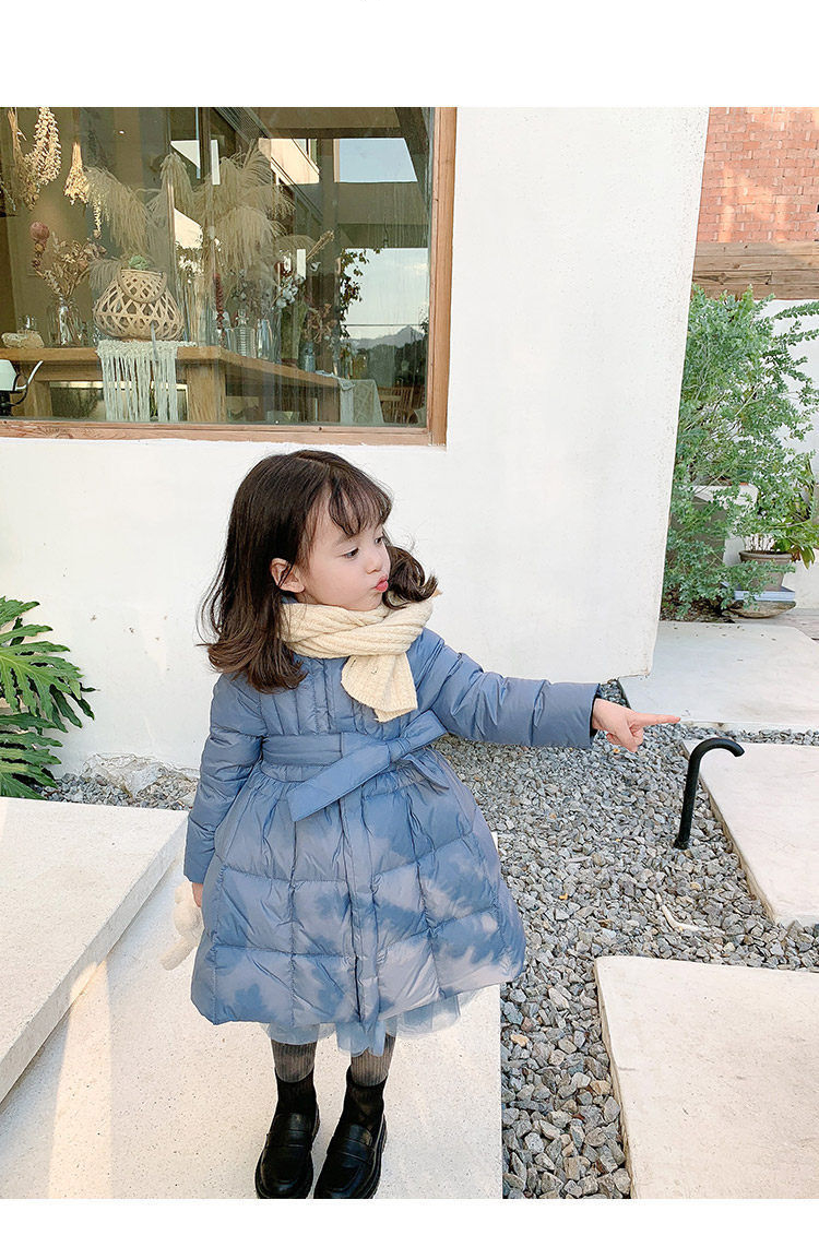 Long Parkas with Mesh Band For Girls is a very fashionable way to dress your little girl. In many colors, this coat is designed like a winter coat-dress with a belt and mesh at the bottom.