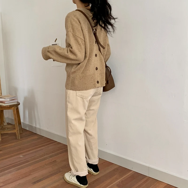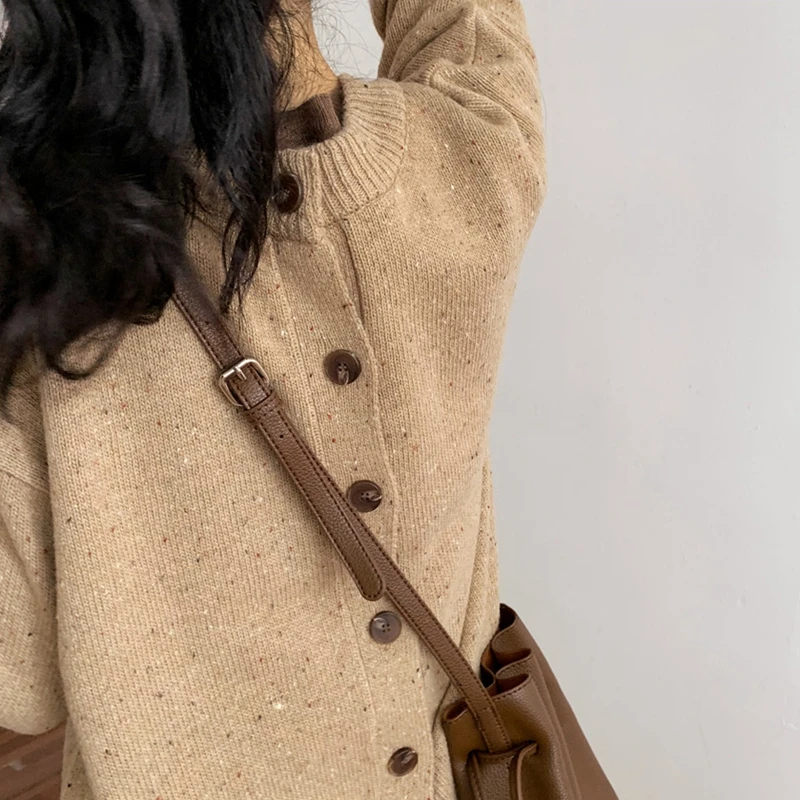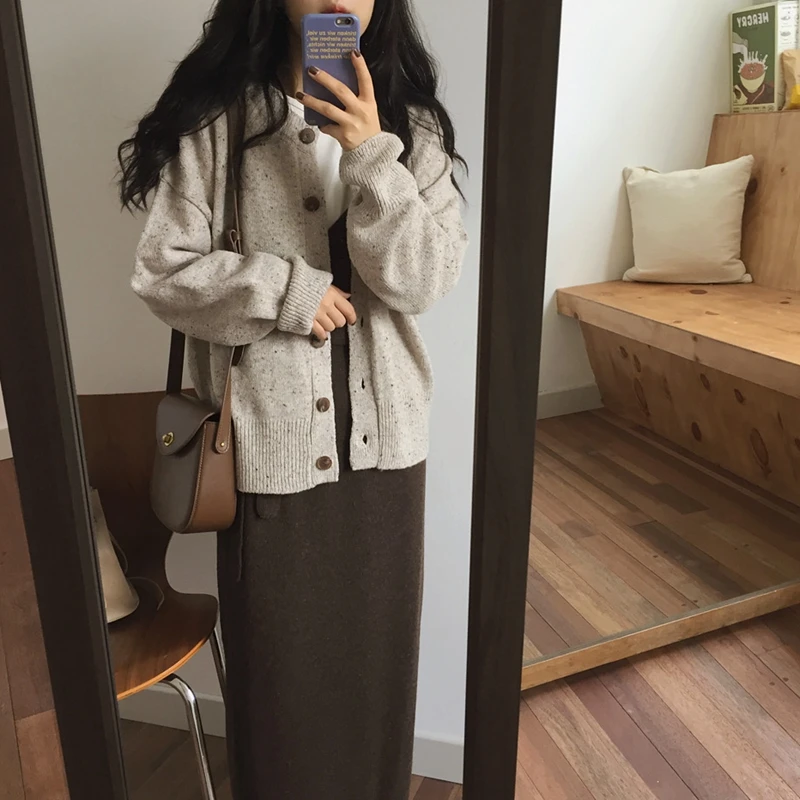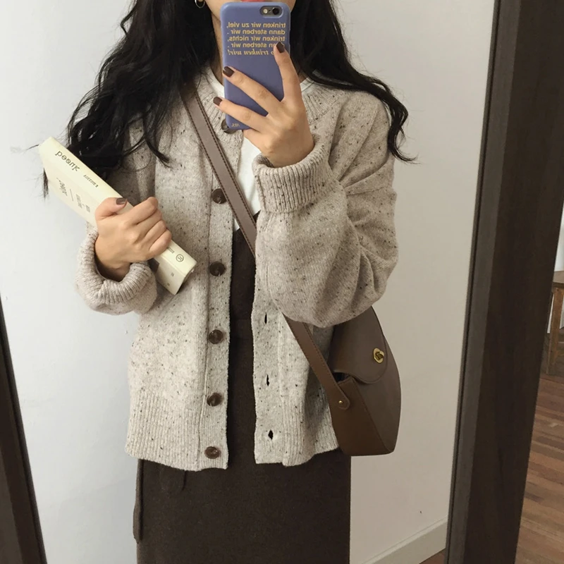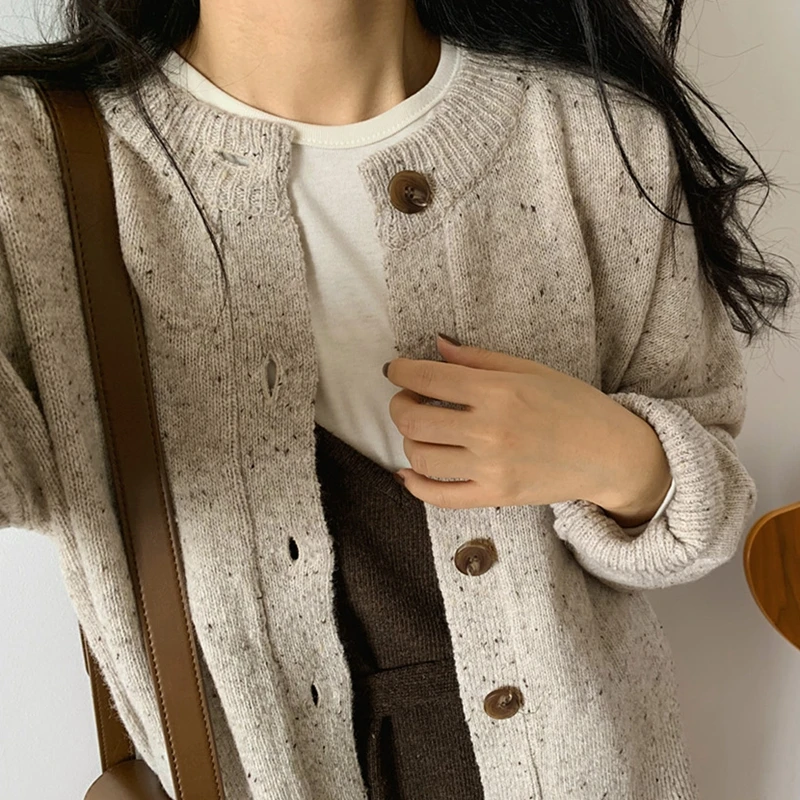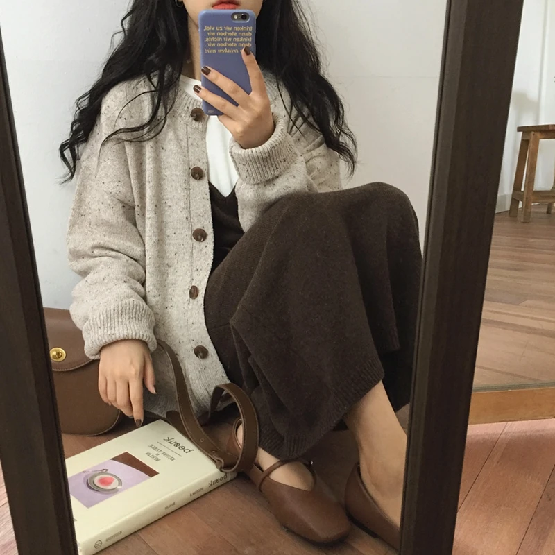 Loose-Fitting Smooth Knitted Cardigan is your way through the cold season. Cozy and chic, this looks like the Parisian choice of city time out or going shopping, walking the dog, or just yourself. Its earthy colors are enticing you to wear them all.
