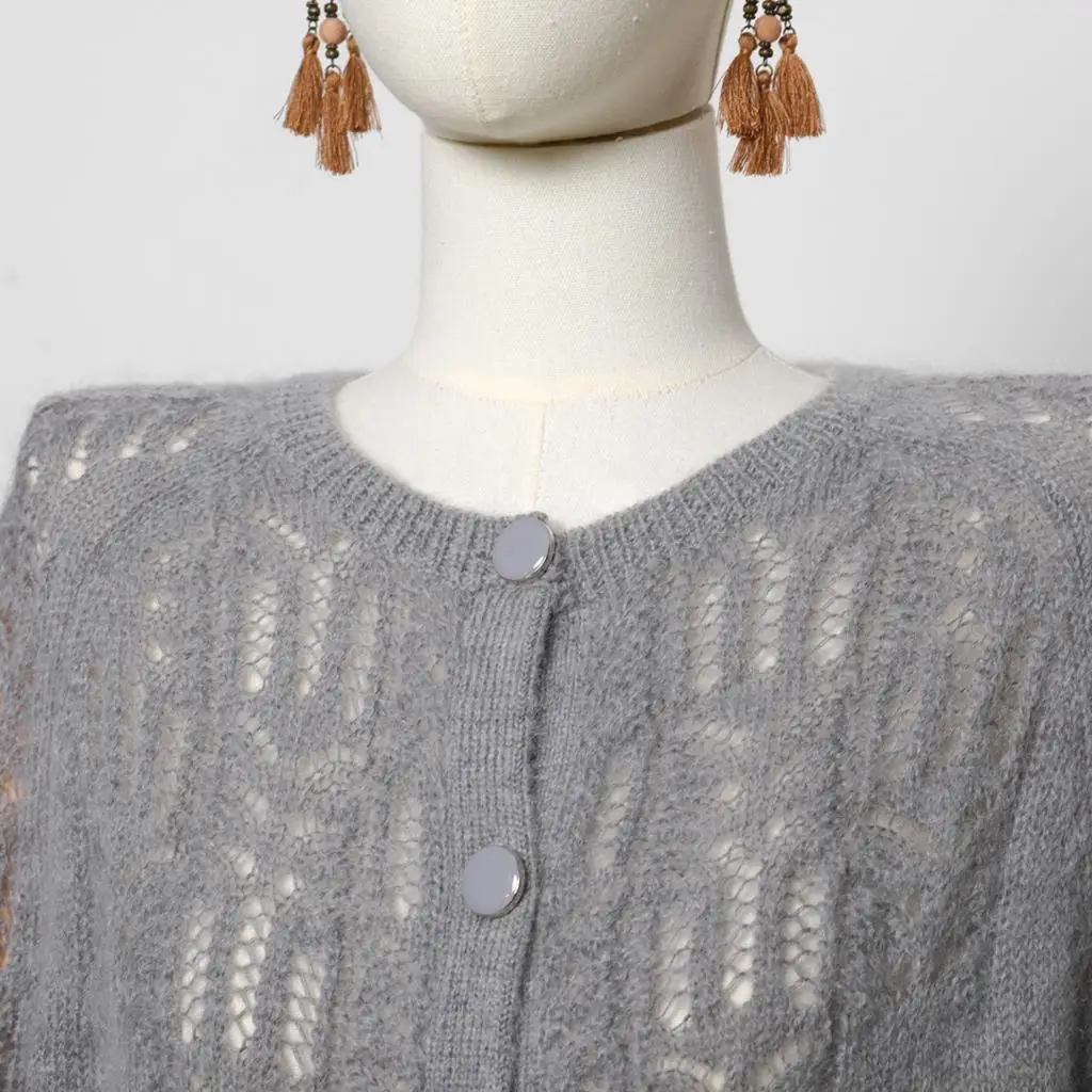 Mohair Knitwear Elegant Cardigan is refined at its best. The casual-chic Parisian look for daily outfits. Match it with a pair of jeans or high-waisted pants, with a subtle necklace and piece of earrings and you are a stunner.