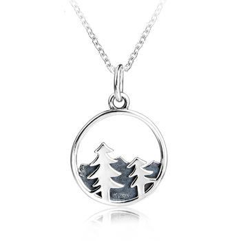 925 Sterling Silver Oxidation Tree Pendant Round Chain Necklace