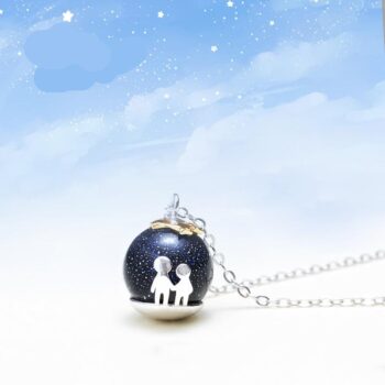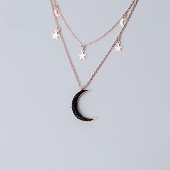 Sterling Silver Black Zircon Stars And Moon Necklace
