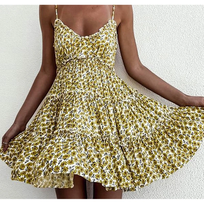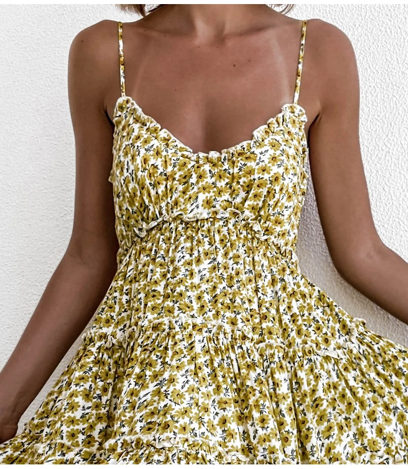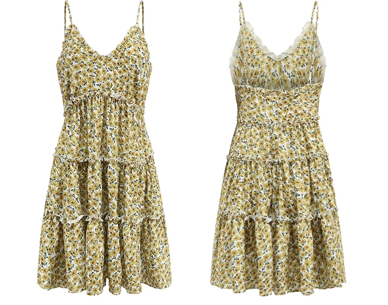 Open Back Sunny Floral Print Summer Dress is the true symbol of a summer style. With spaghetti straps, v neck, and floaty design, this is perfect to wear on a day to day basis. Just put your hat on!