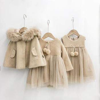 3 Pcs Set With Yarn Splicing Vest Dress And Hooded Coat