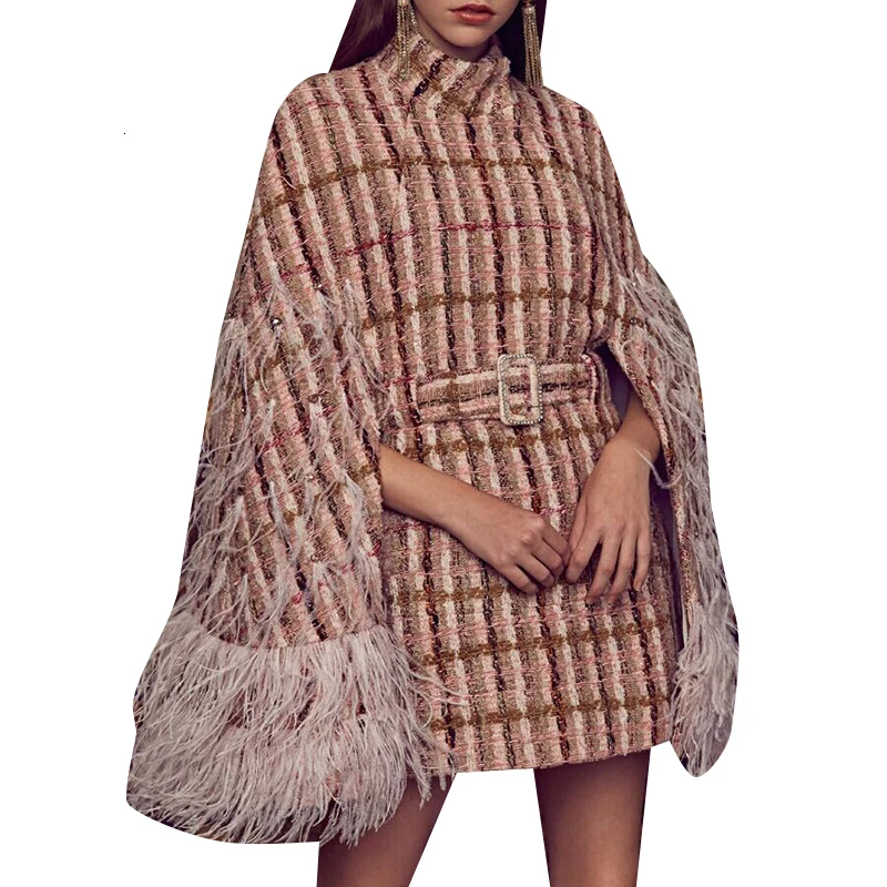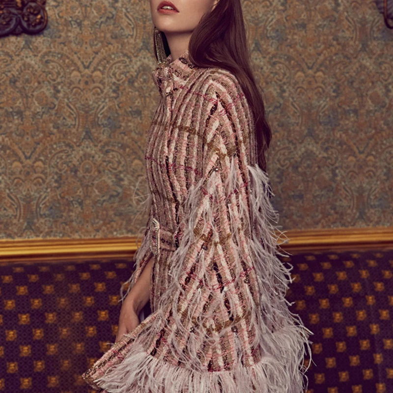 Patchwork Diamond Feathers Plaid Coat