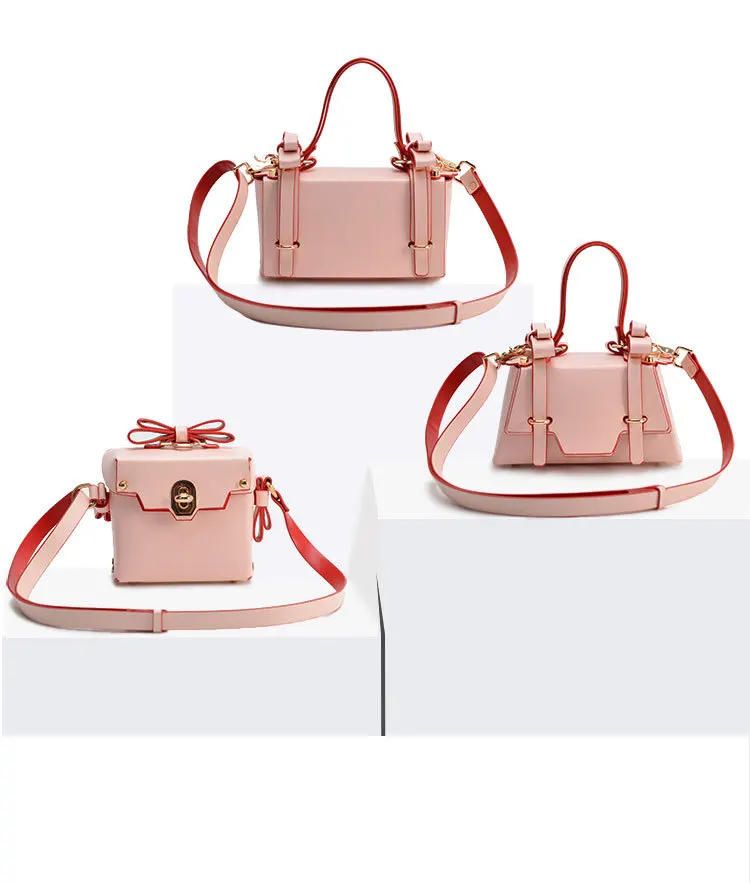 Pink Bow Handbag And Shoulder Bag is a solid version of a versatile bag: chic, classy and cool at the same time! Three different versions from trapezoid shape to square and rectangle make the geometry of these special bags.