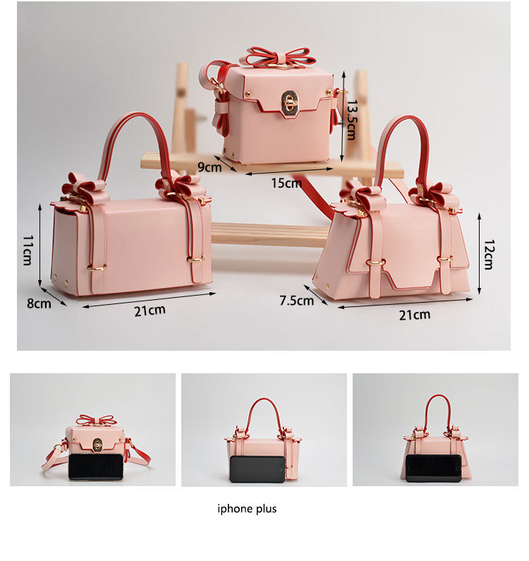 Pink Bow Handbag And Shoulder Bag is a solid version of a versatile bag: chic, classy and cool at the same time! Three different versions from trapezoid shape to square and rectangle make the geometry of these special bags.