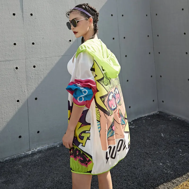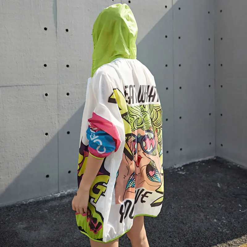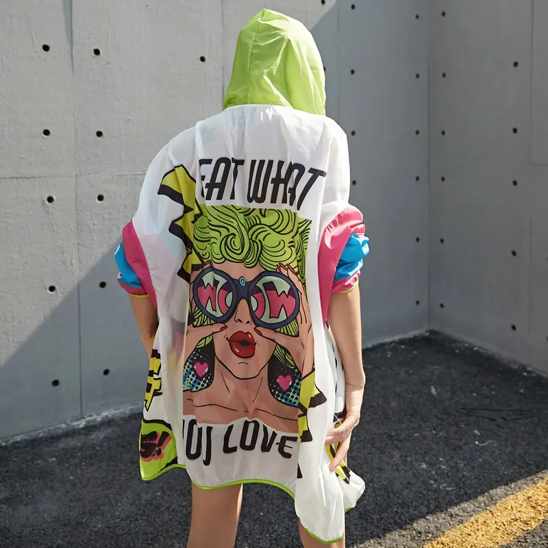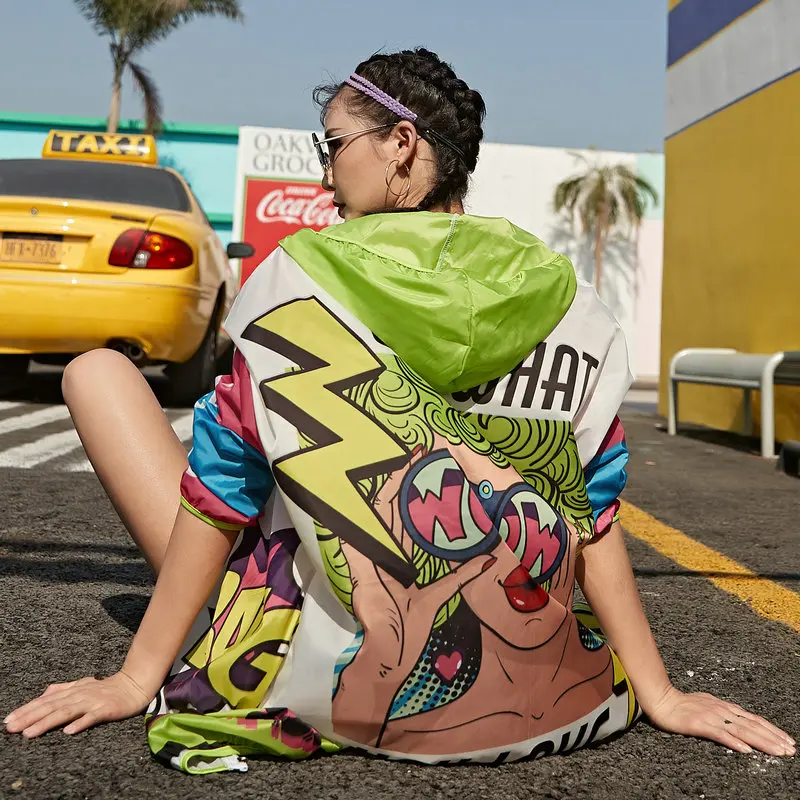 Pop Art Beach Cover Up is a funny way to wear your outfit but also get protected from the sun, wind, or else. Its Loose UV-proof Long Sleeve design with Wide Brim and Pockets create that cool and young look you need to have.