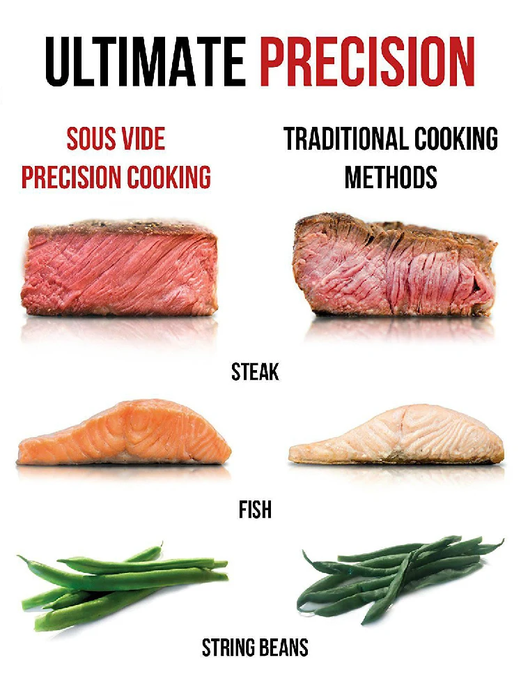 Fast circulator heating – At 1500W, the sous vide heats water quickly, it is faster to get to temp. This one maintains the temperature even and steady helps to cook food at a particular temperature. And the improved circulator can also handle much larger water baths to allow cooking more food at one time.